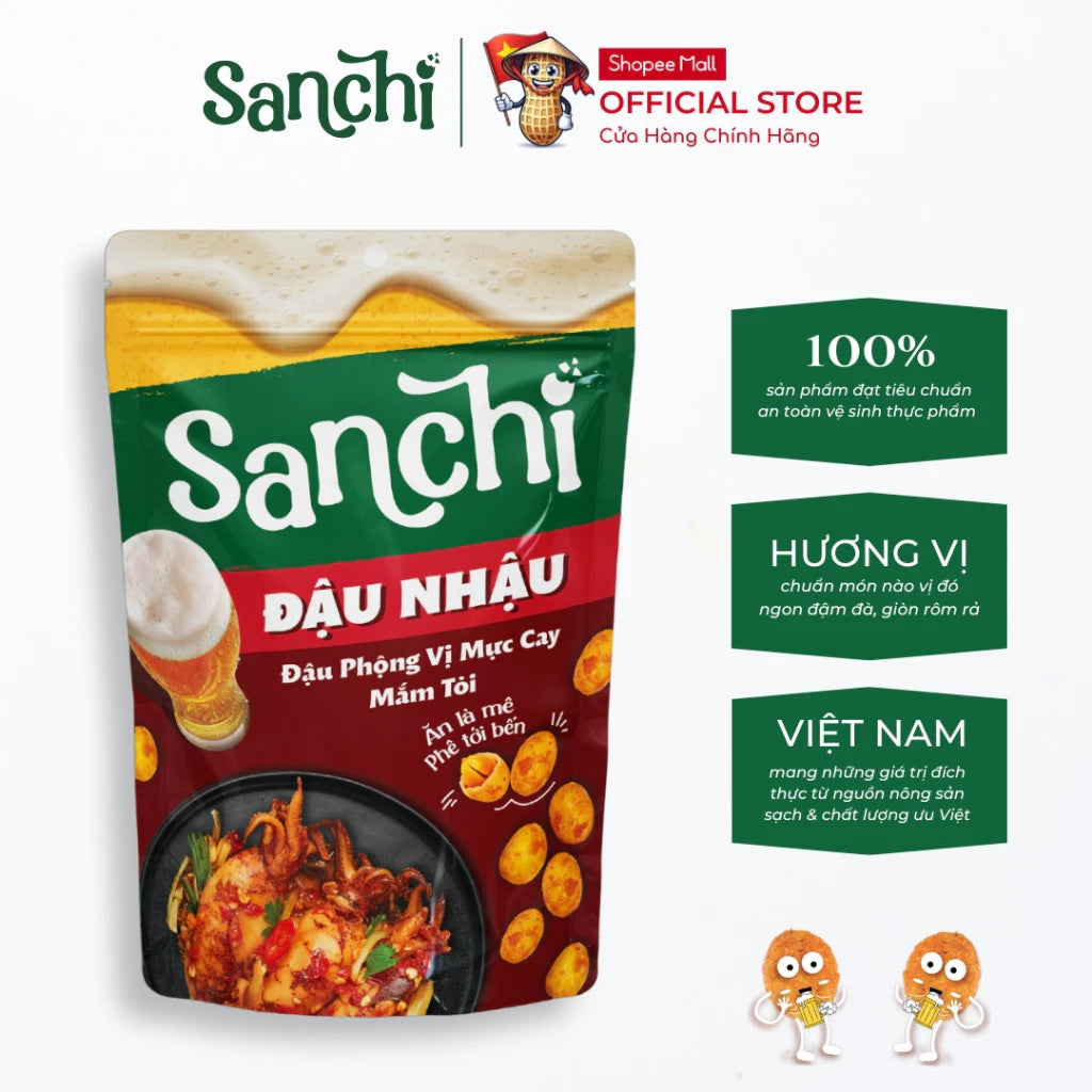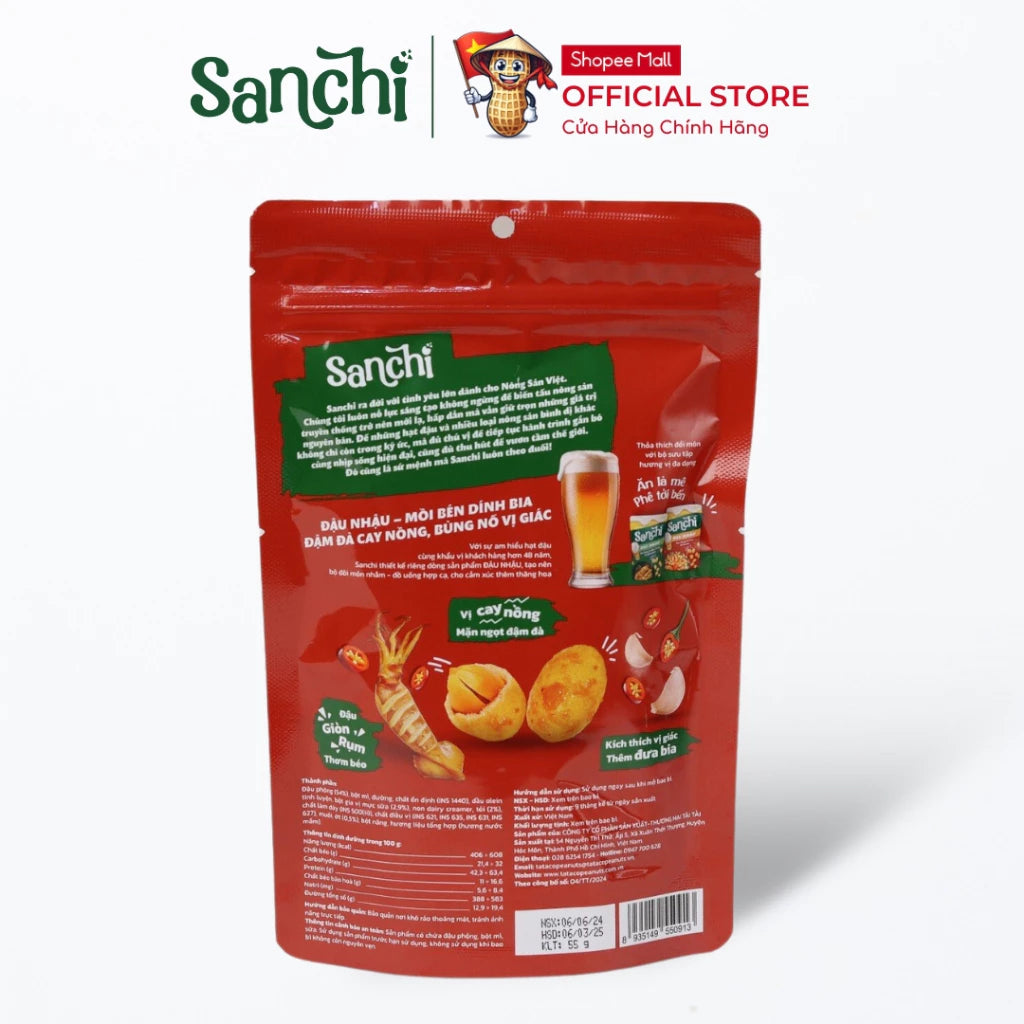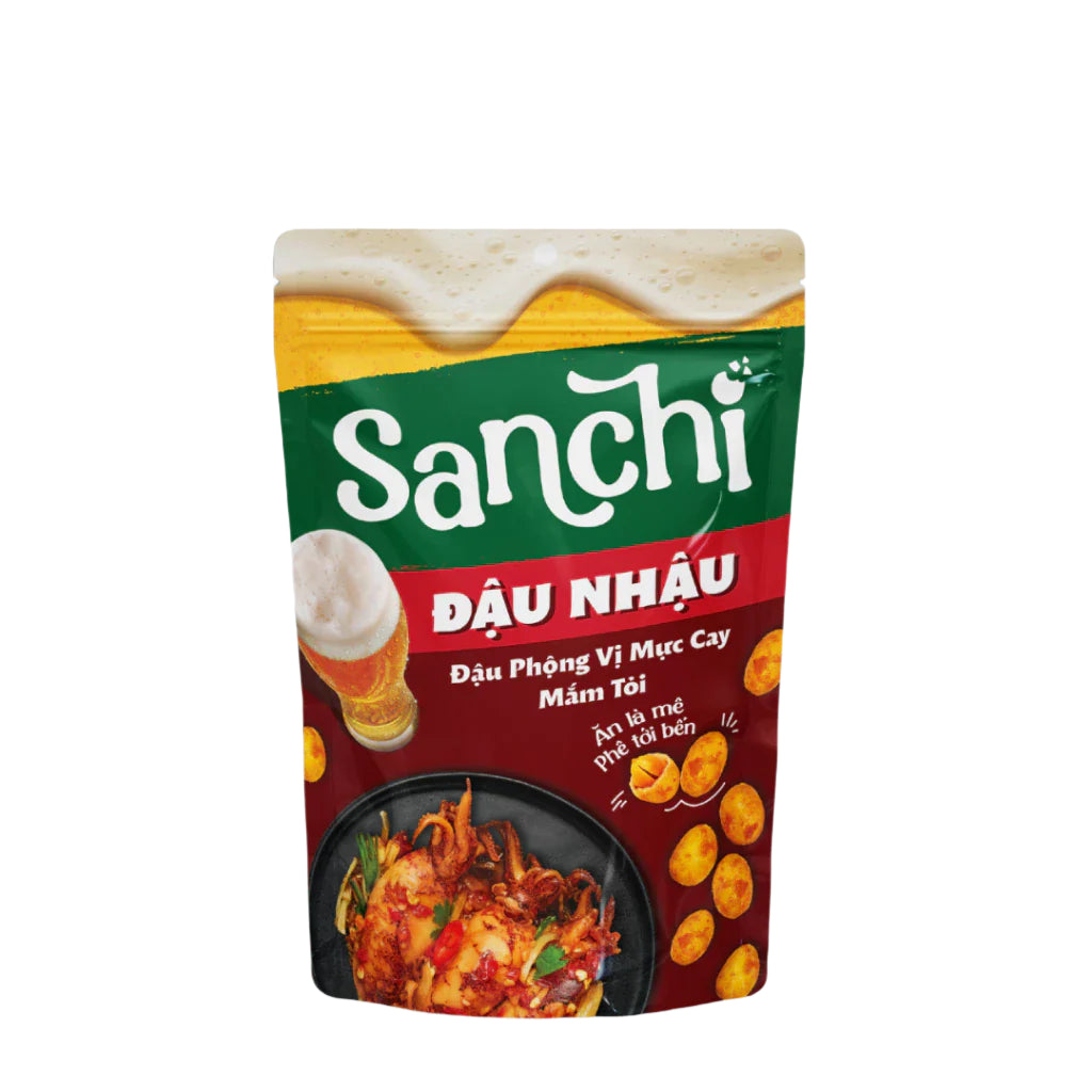 Đậu Phộng Vị Mực Cay Mắm Tỏi Sanchi phù hợp với các buổi nhậu tại gia với hương vịTạp Hóa Tân Bìn chân thật, đậm đà, bắt miệng sẽ là mồi nhậu bén cùng hội bạn. Hương vị đúng chuẩn “món nào vị đó” rõ nét, hạt đậu giòn rụm với công nghệ Sấy Nhiệt tiên tiến, lớp vò giòn tan trong miệng. Sự hoà quyện độc đáo mang đến cảm giác bùng nổ và kích thích vị giác không ngừng.