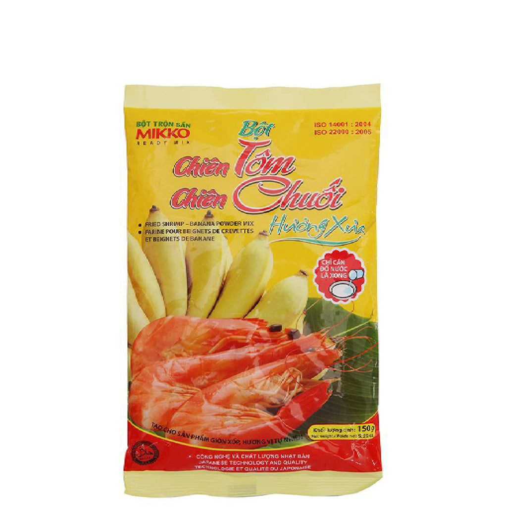 -Bước 1: Đổ 1 gói bột chiên tôm chiên chuối Hương xưa vào tô rồi cho thêm 1 2 muỗng ăn canh đường và 200ml nước lạnh tan từ đá trộn cho đến khi hỗn hợp tan đều