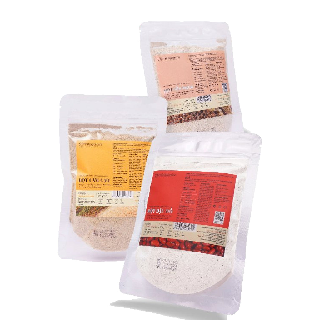 - Đậu đỏ (Best seller): Trắng da, tẩy tế bào chết. Yến mạch: Chống lão hóa, ngừa mụn. Cám gạo: Giảm thâm, làm sạch