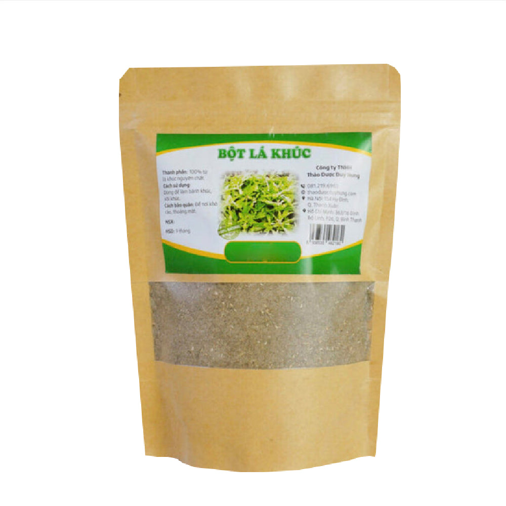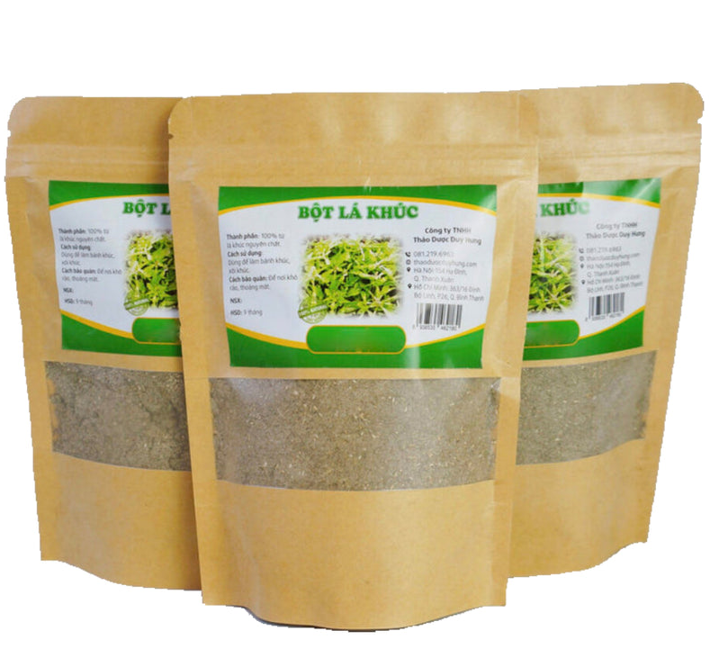 Bột lá khúc được chế biến từ cây rau lá khúc thành dạng bột mịn khô có màu xanh thẫm. Sau quá trình chế biến và sản xuất dựa trên quy trình khép kín đảm bảo vệ sinh an toàn thực phẩm, không có hoá chất, chất bảo quản, an toàn giúp cho sản phẩm vẫn giữ được màu sắc, mùi vị đặc trưng và dưỡng chất của lá khúc.