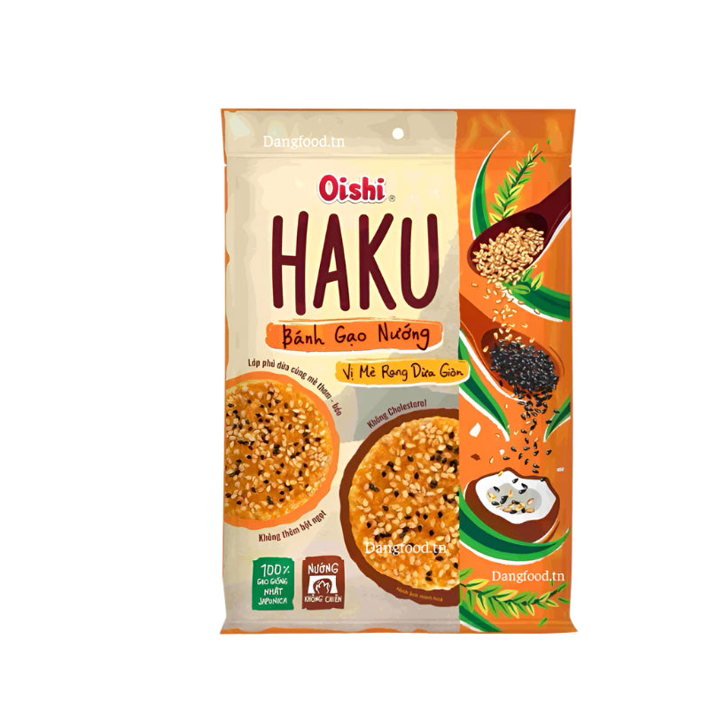 Bánh gạo Nướng Haku Oishi Vị Mè Rang Dừa Giòn 138gr - Sản Phẩm Chất Lượng Đến Từ Nhà Oishi 🔥