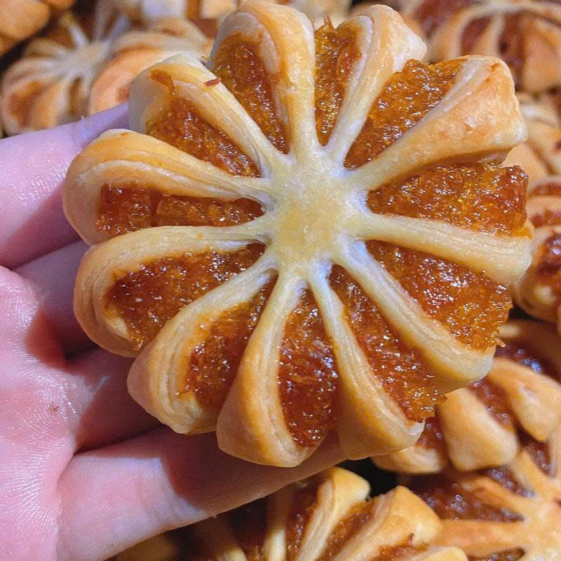 BÁNH KHÓM HOA MAI tương trưng, phát tài phát lộc 8 cánh, hoa mai may mắn bình an, nhân thơm ngọt ngào thơm thảo cả năm