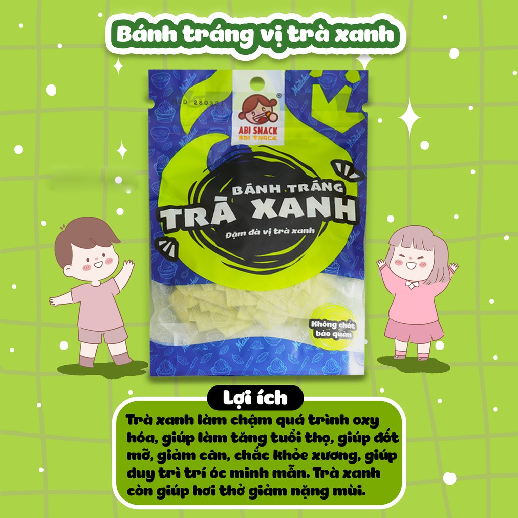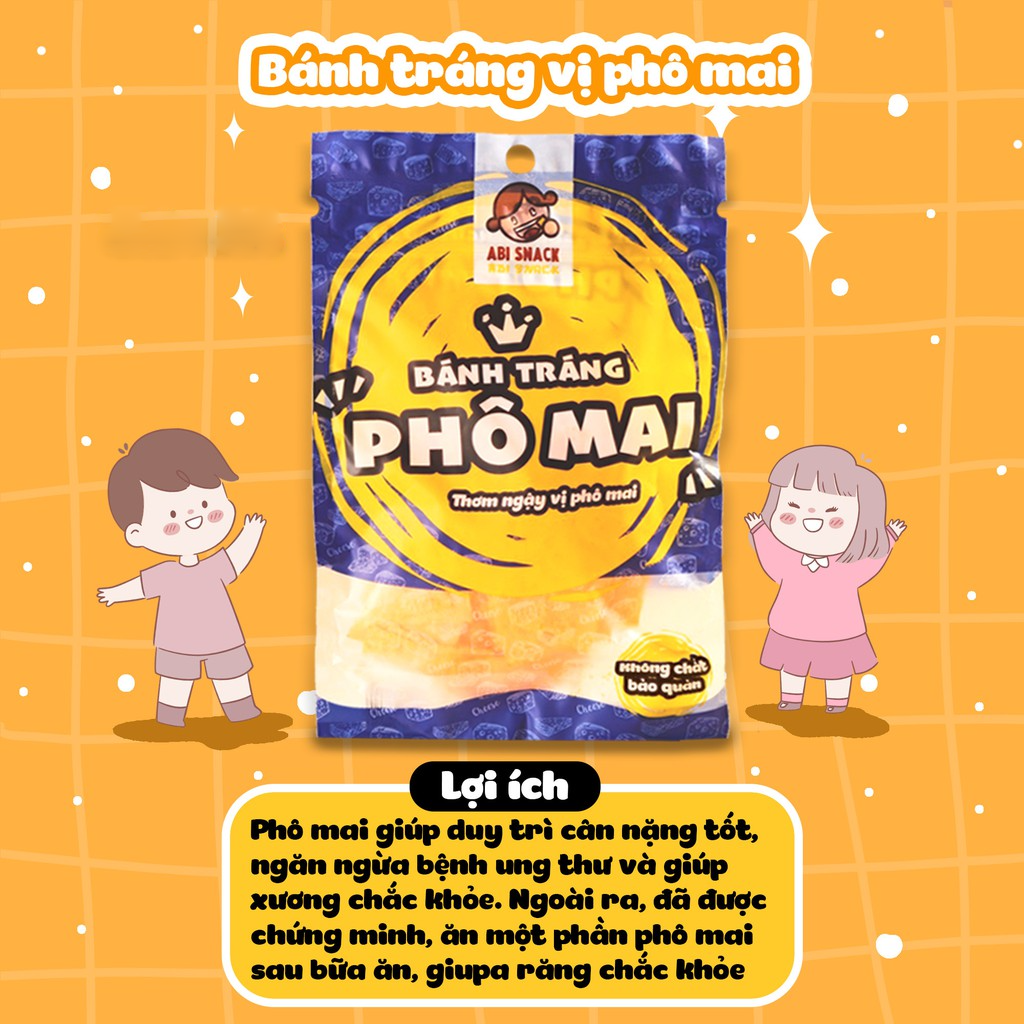 Bánh tráng Abi nhờ vào những hương vị vô cùng "Độc", "Lạ", thơm ngon, đều được đóng gói túi Zip chắc chắn, ép nhiệt 4 góc, hạn sử dụng in dập nổi trên từng bịch bánh tráng