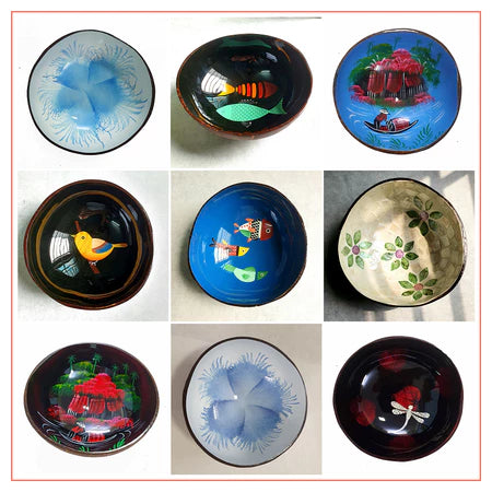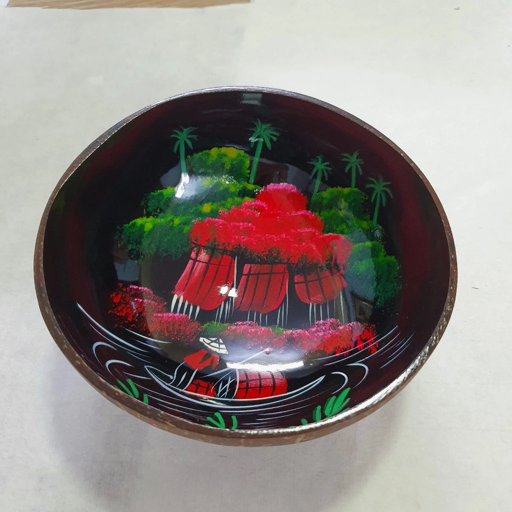 👉Chất liệu: Bát dừa được vẽ tranh với nhiều họa tiết khác nhau