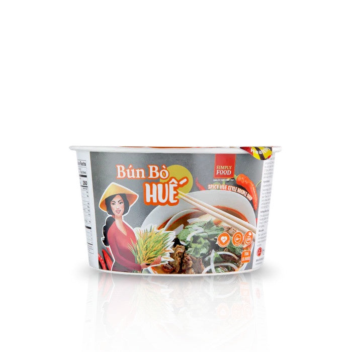 Bún bò Huế là món đặc sản của Việt Nam. Món súp đậm đà và cay với các tầng hương vị sâu sắc gói gọn trong những gói gia vị, có thể tạo nên một món ngon trong vòng 3-5 phút bạn chỉ cần rưới nước sôi vào là bạn có ngay một bữa ăn độc đáo miền Trung này. Ăn ngon hơn khi cho thêm rau thơm vào!