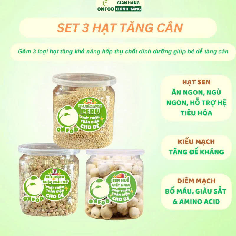 Các loại hạt dinh dưỡng hữu cơ nhập khẩu ONFOD nấu cháo, làm sữa hạt cho bé ăn dặm yến mạch hạt chia đậu gà đậu hà lan hạt kê đậu lăng đỏ diêm mạch kiều mạch