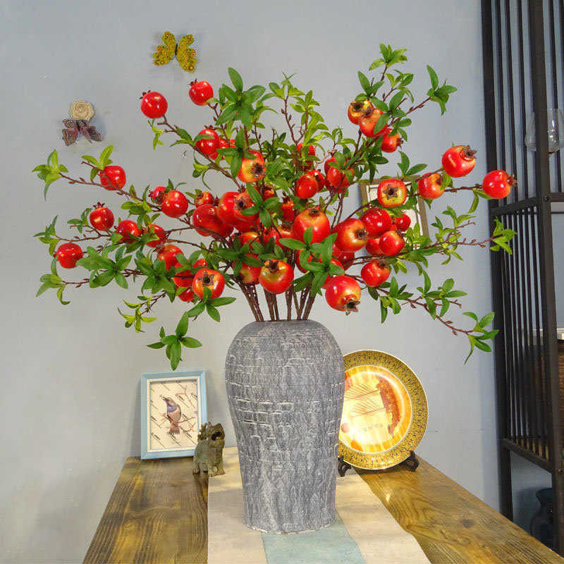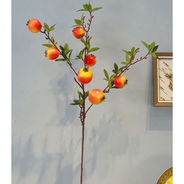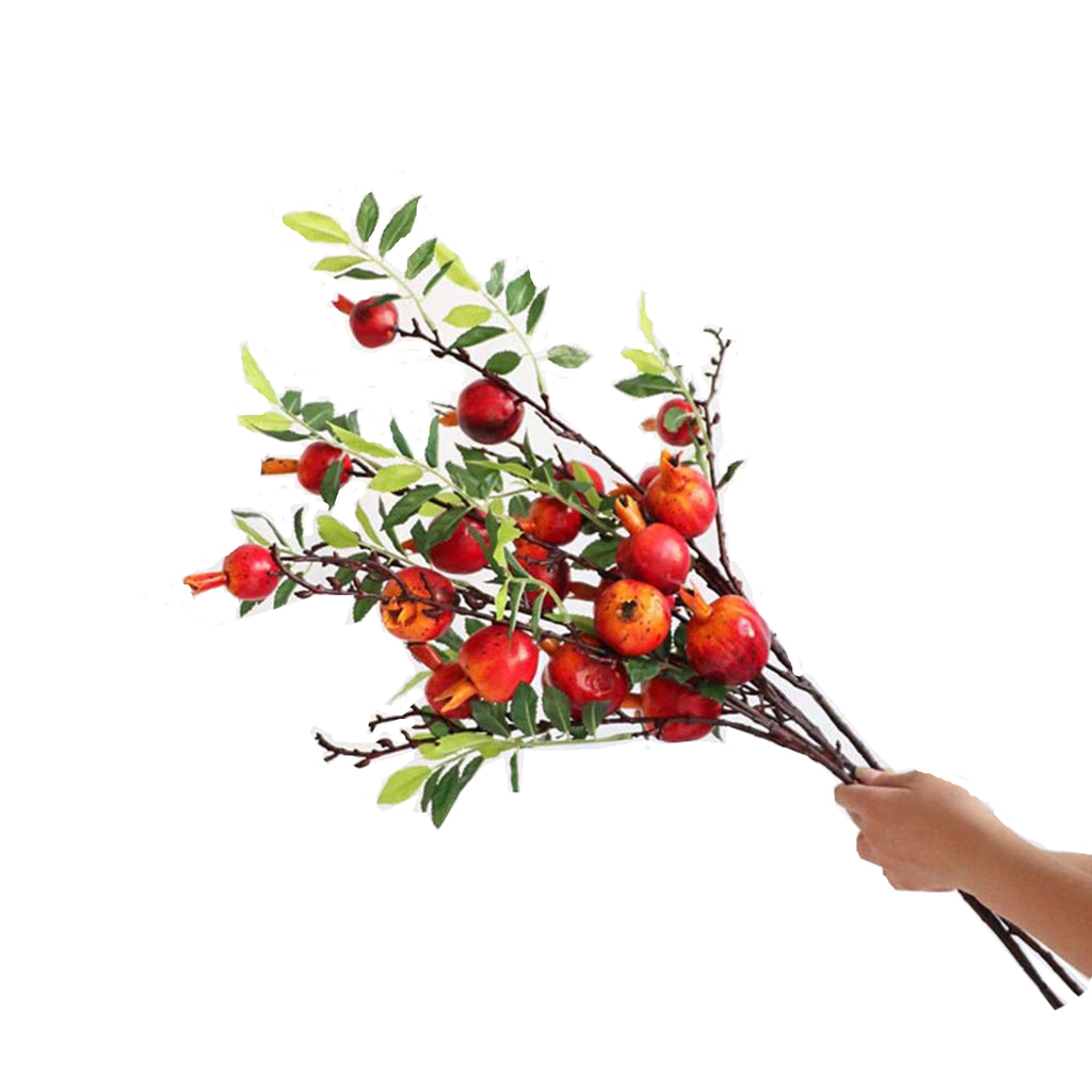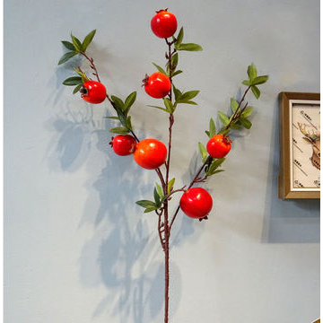 Cành lựu cao 85 cm, lá bằng vải lụa, thân được thiết kế 3 lớp có thể uốn tạo dáng theo ý của mình. Qủa lựu làm bằng chất liệu xốp cao cấp bọc silicon nên quả rất căng bóng rất dễ vệ sinh
