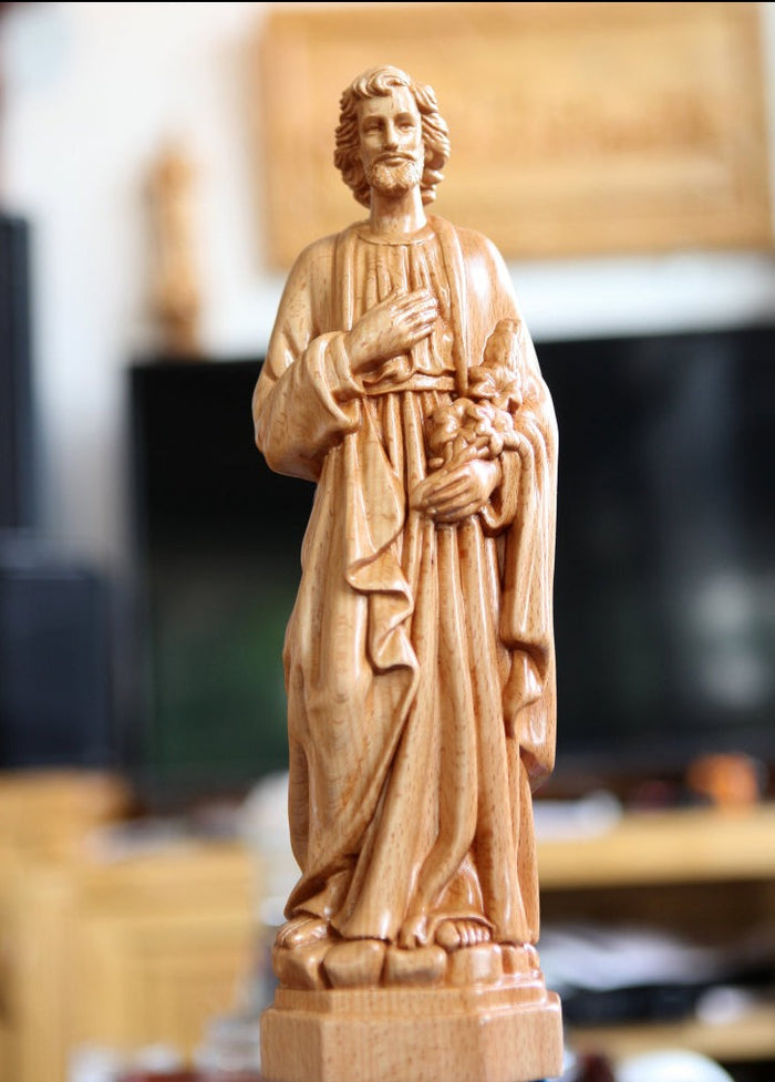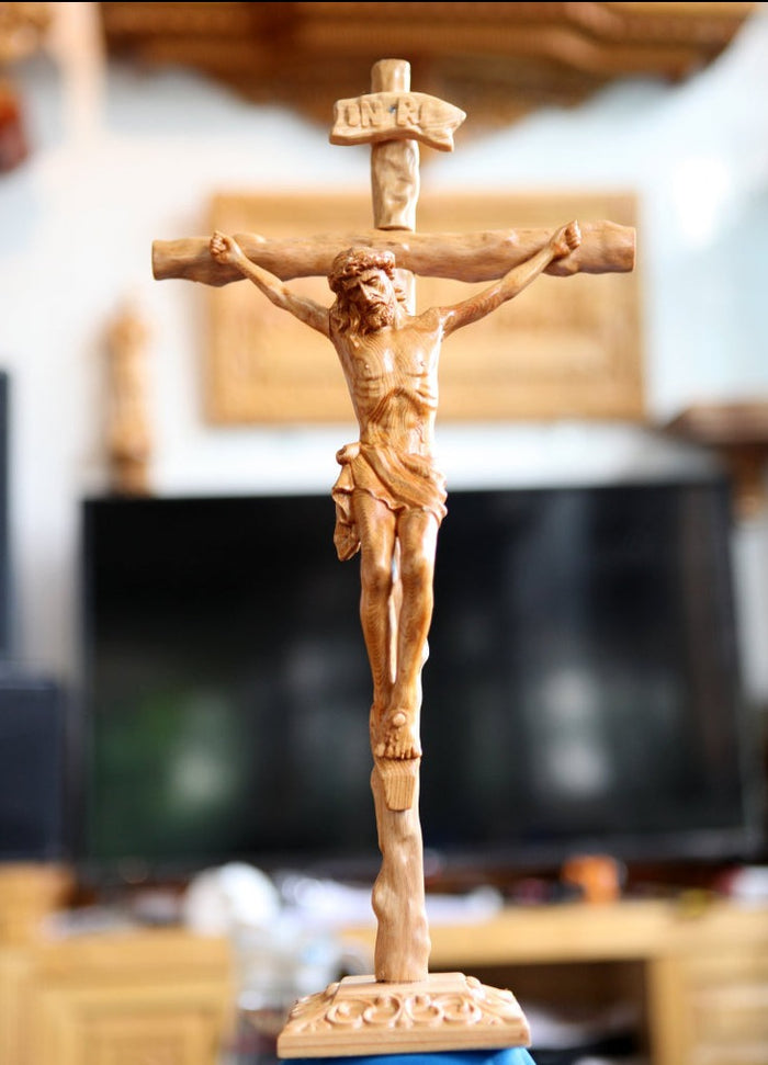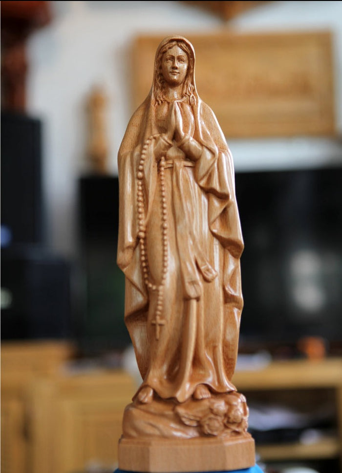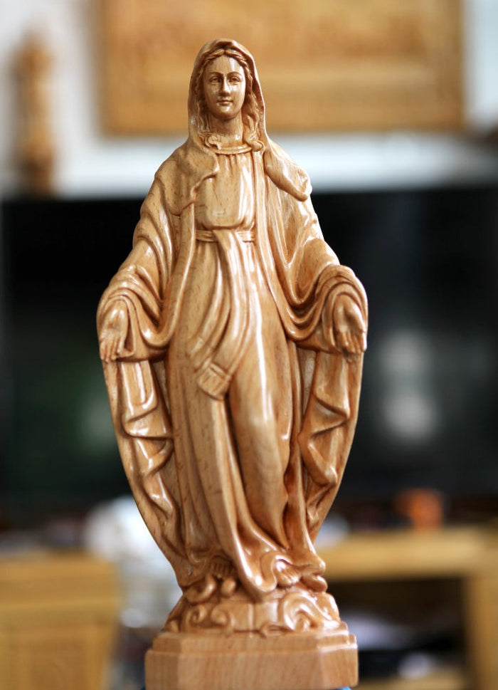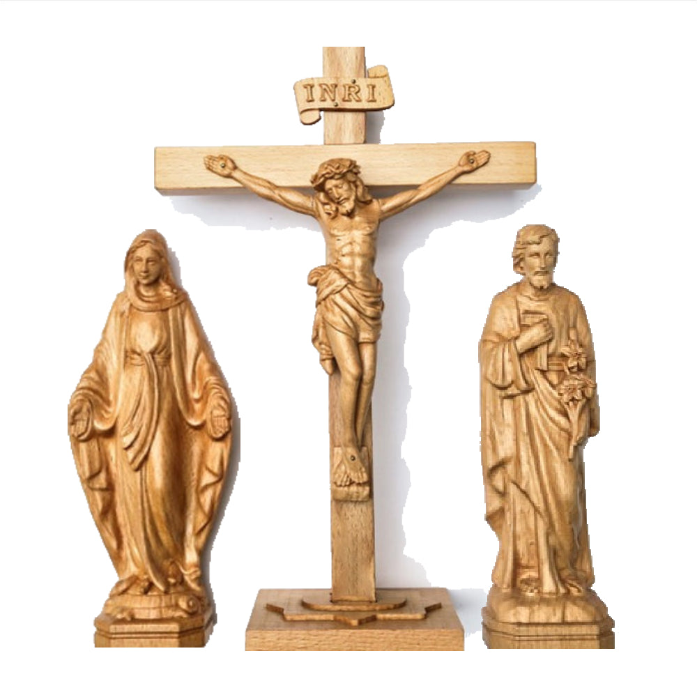 Wood Carving Catholic Icons is exquisitely engraved on high quality Beech wood imported from Germany and is uniquely designed so that when put together, a very compact circular cylindrical block.