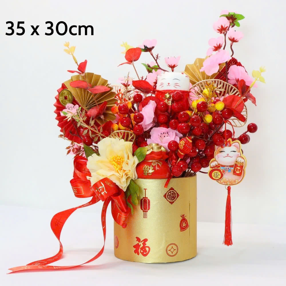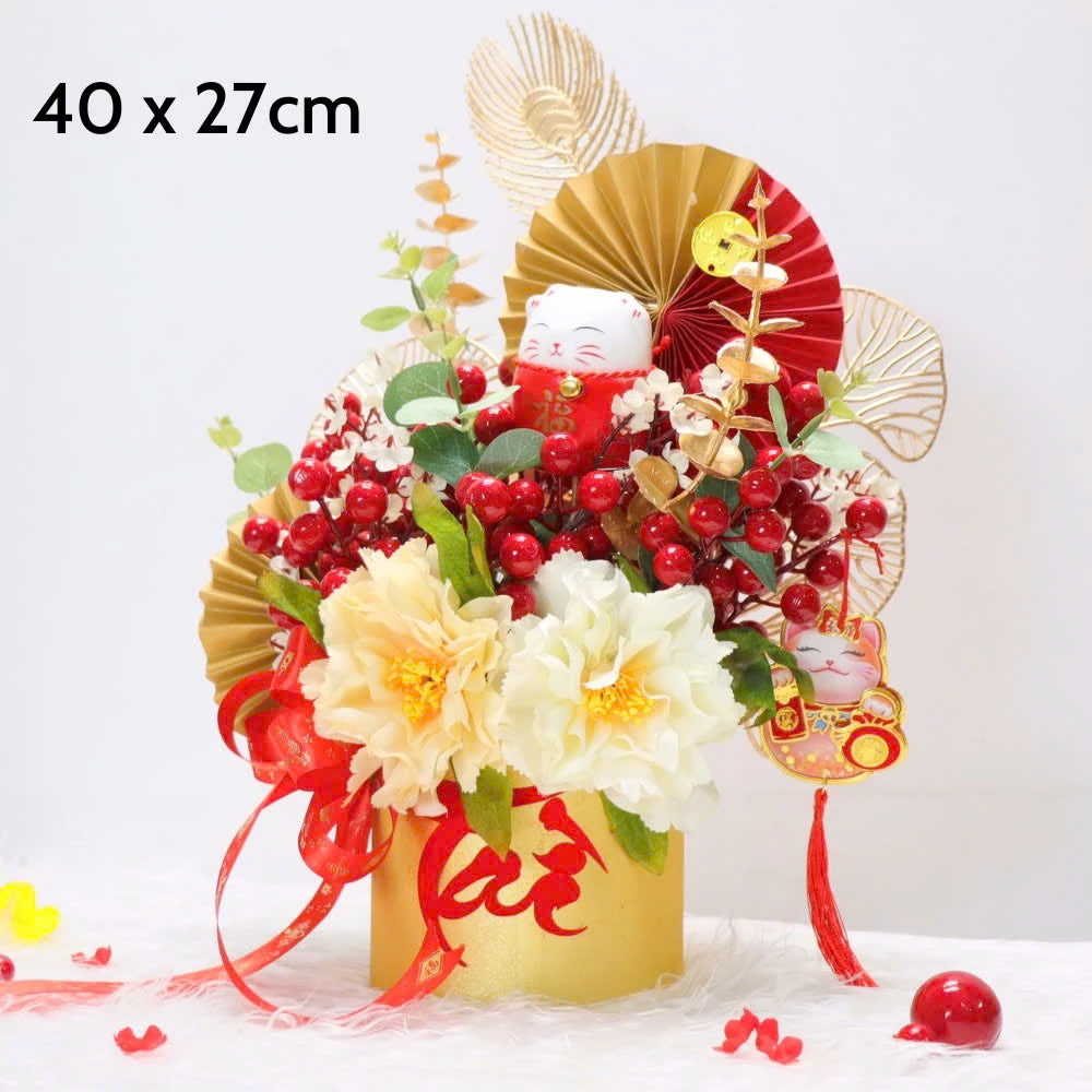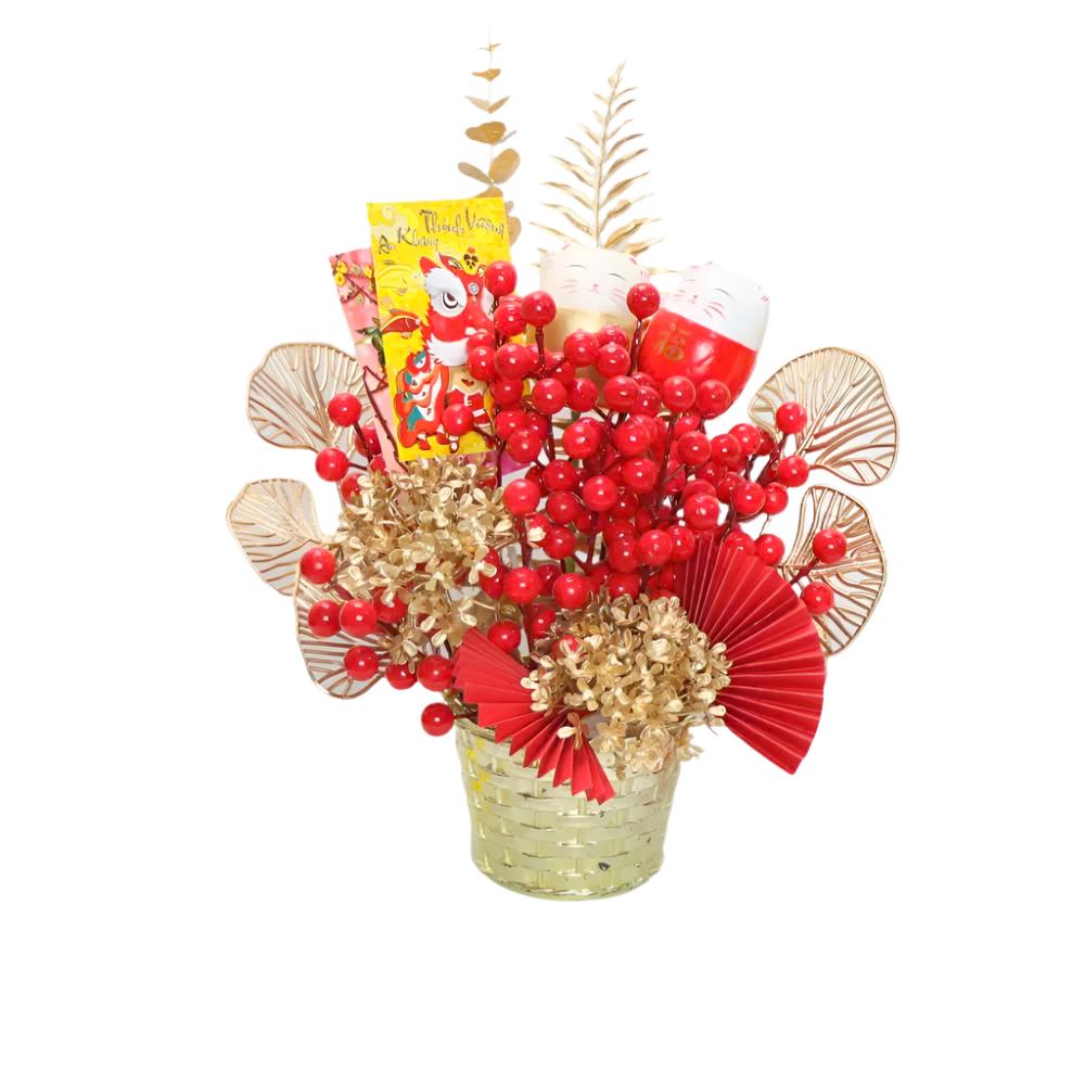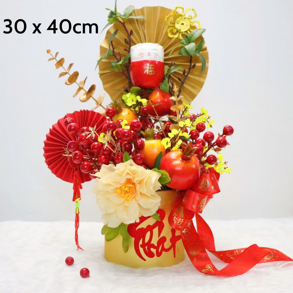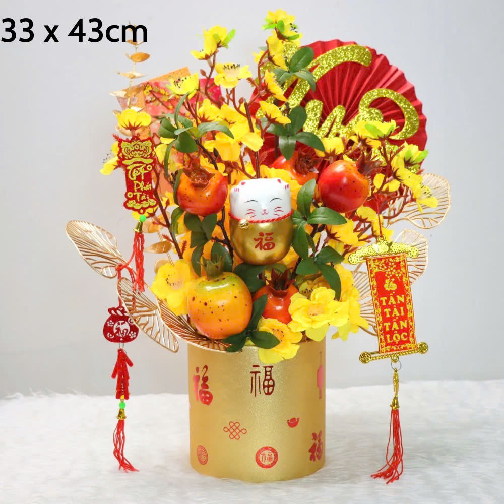 ✅ Chậu được trang trí theo chủ đề Tết với gam màu đỏ vàng sặc sỡ là biểu tượng cho sự thịnh vượng, may mắn, sung túc giàu sang cho gia chủ.
