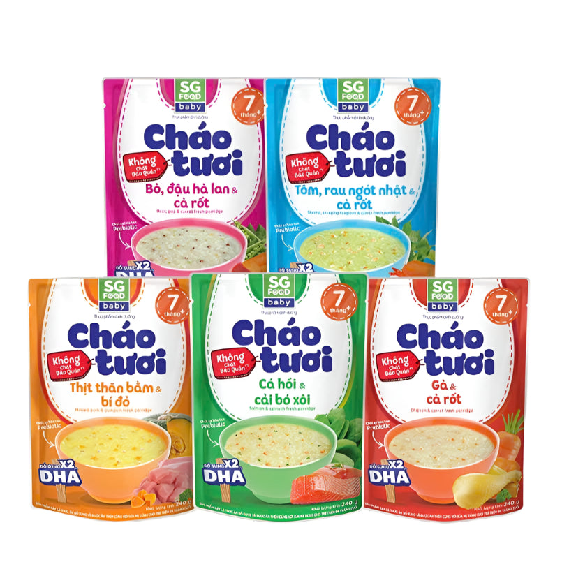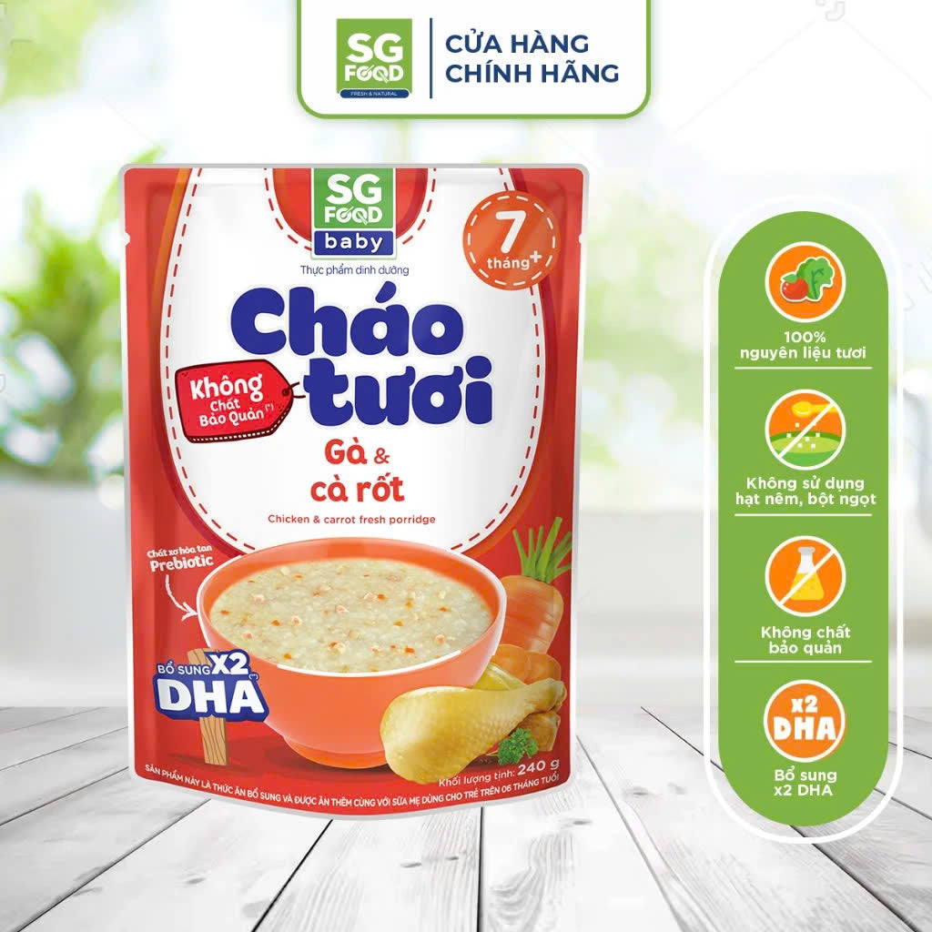 Mẹ luôn dành những điều tốt nhất cho con! Mỗi bữa ăn cho con là niềm vui của mẹ, và mẹ biết rằng con yêu cần được cung cấp đầy đủ dưỡng chất giúp con mau lớn và khỏe mạnh. Vì vậy mẹ chọn cháo tươi để mang đến cho con bữa ăn dinh dưỡng tươi ngon như mẹ nấu. Cháo tươi Sài Gòn Food làm từ: