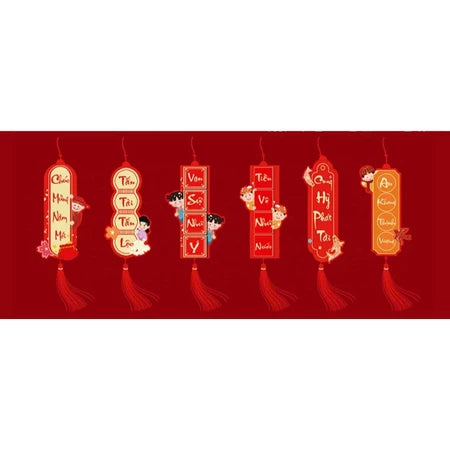 Set 6 Liễng dây treo TIẾNG VIỆT trang trí Tết, phụ kiện decor thẻ liễn tag hình, dải treo cây quất đào mai dịp Nguyên Đán.