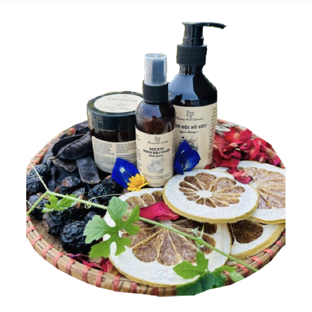 - Được chiết xuất từ 100% tinh dầu bưởi thiên nhiên, kết hợp với nước chưng cất vỏ bưởi, dầu argan, vitamin B5...