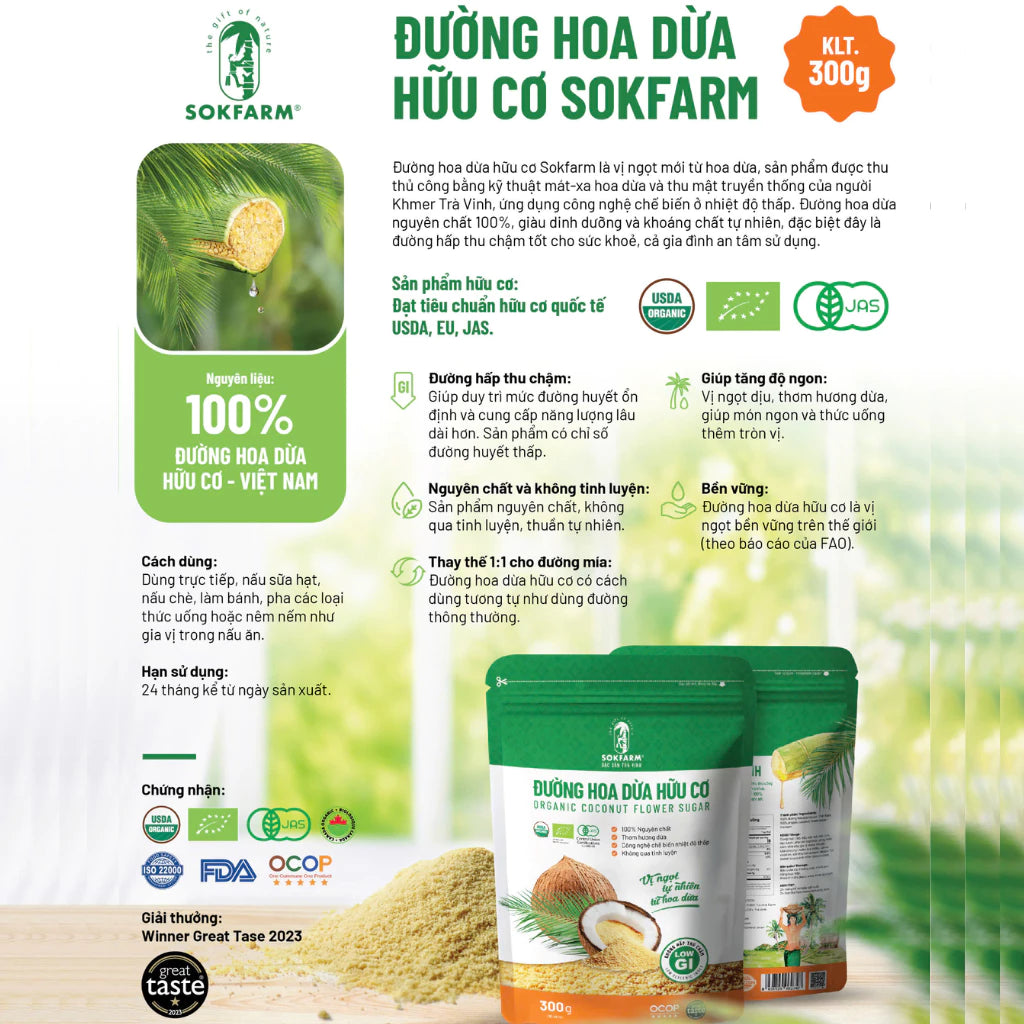 🎉 ĐƯỜNG HOA DỪA ORGANIC SOKFARM TÚI 300G 🎉