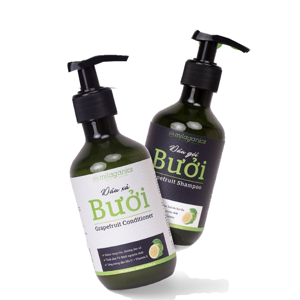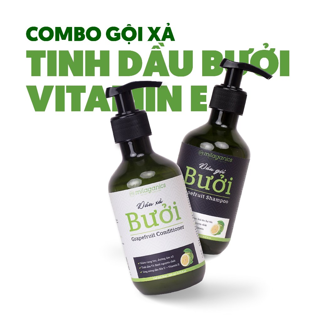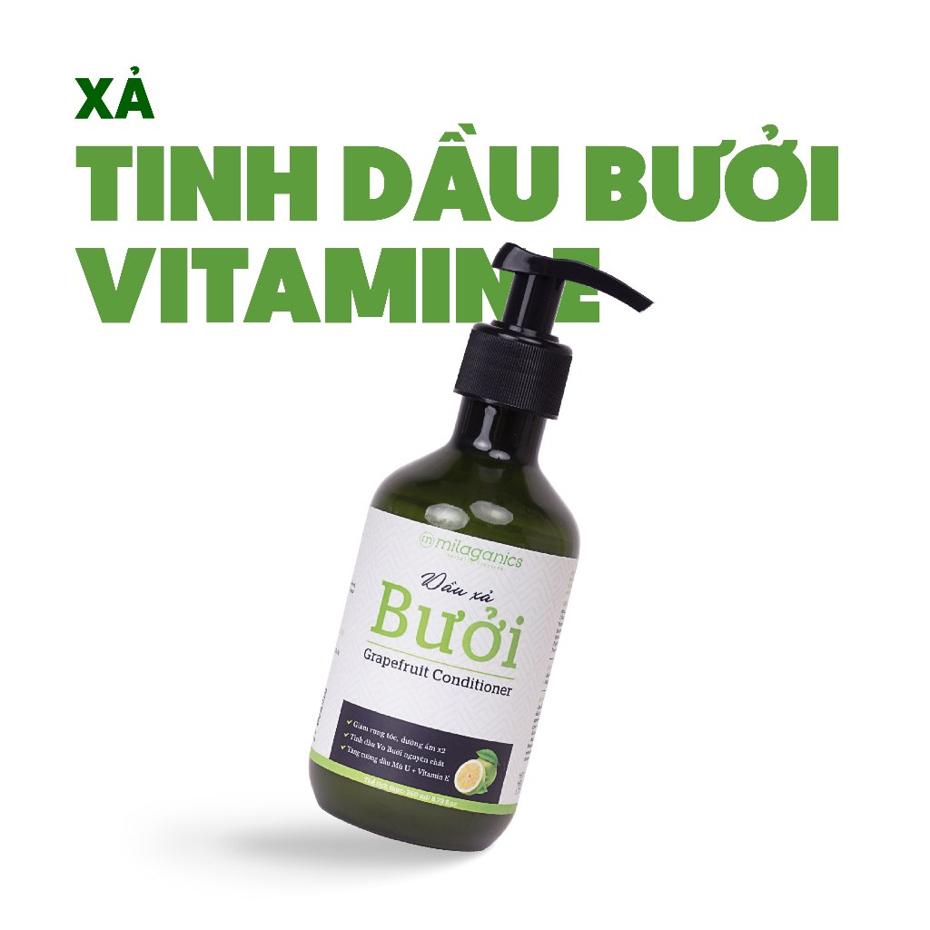- Dầu xả bưởi: Tinh dầu bưởi, Chiết xuất Nha Đam, Dầu Mù U, Vitamin E cùng các chất giúp làm mềm mượt tóc chuyên sâu như Cetrimonium Chloride, Quaternium-98 và Stearamidopropyl Dimethylamine