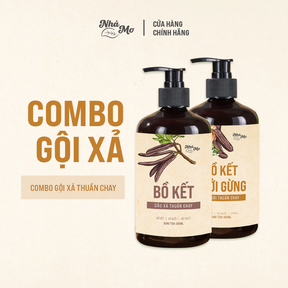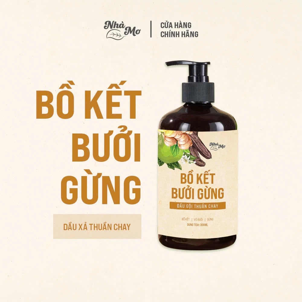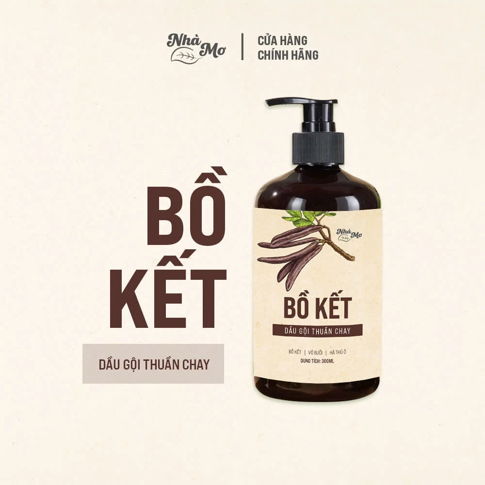 - Dầu gội bồ kết Nhà Mơ chứa 100% các thành phần tự nhiên như Bồ Kết, Bưởi, Bồ Hòn, Hà Thủ Ô, Hương Nhu, Sả, Chanh, Gừng và các thảo mộc khác, tạo thành một công thức tự nhiên tinh tế và hiệu quả. Đặc biệt các thành phần như bồ kết, gừng, bưởi được cho lượng nhiều vì đây là các thành phần nổi tiếng giúp cho tóc mọc chắc khỏe, giảm rụng, phục hồi tóc/