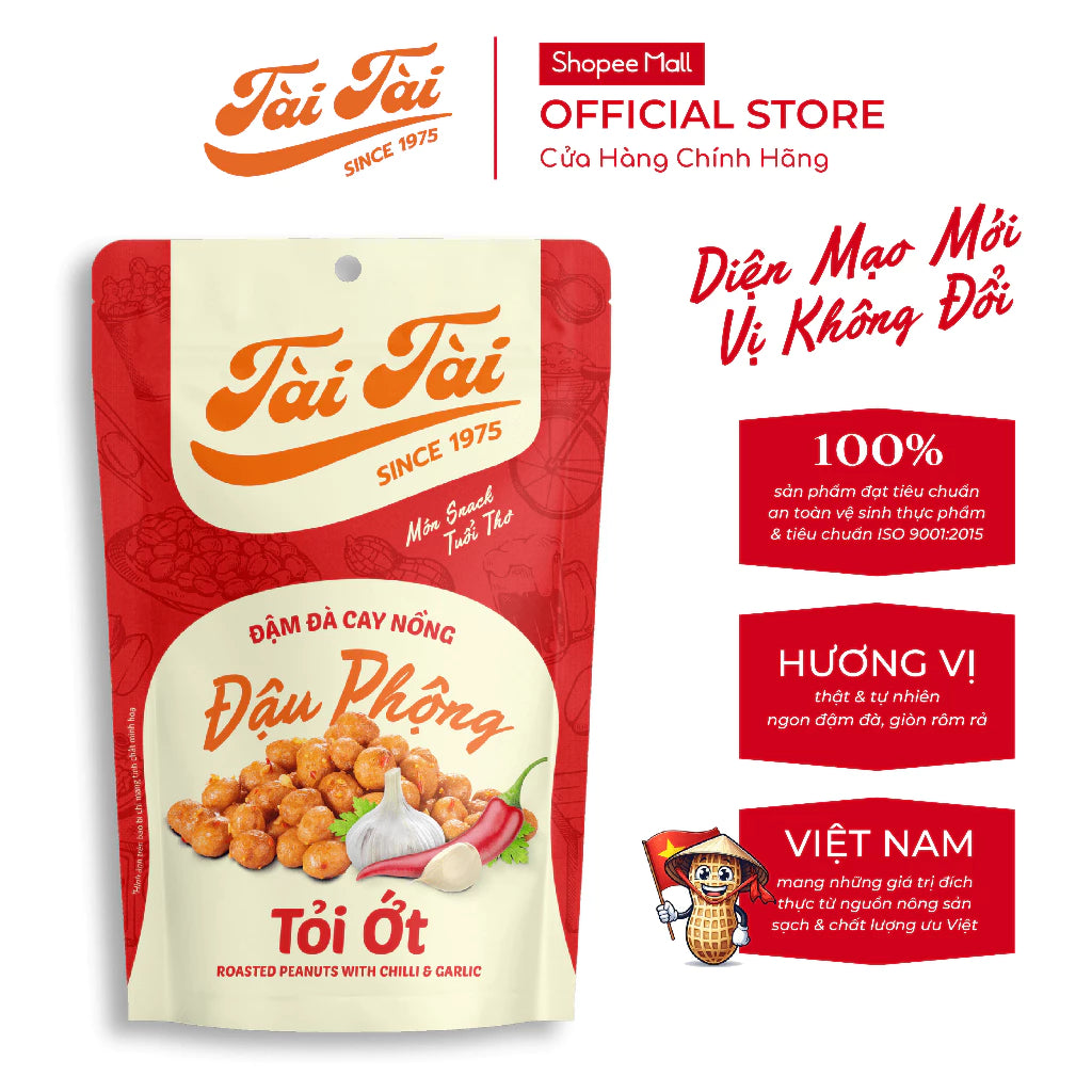 Đậu phộng tỏi ớt Tài Tài là món ăn vặt được yêu thích bởi hương vị thơm ngon, đậm đà và dinh dưỡng. Được chế biến từ những hạt đậu phộng tươi ngon hương vị truyền thống, đậu phộng giòn rụm, sản xuất độc quyền dựa trên dây chuyền công nghệ hiện đại tại Tài Tài. Được làm 100% từ hạt đậu nguyên chất, tuyển chọn kỹ lưỡng kết hợp hoàn hảo cùng hương vị đậm đà, hài hòa vị béo bùi của hạt đậu giòn tan, tạo nên một hương vị bùng nổ. Món ăn vặt dinh dưỡng vừa ngon miệng vừa cung cấp protein, chất xơ, vitamin và khoáng chất cần thiết cho cơ thể. Giúp bổ não, tăng cường trí nhớ. Tốt cho tim mạch. Món ăn phù hợp với mọi lứa tuôi, snack ăn vặt tiện lợi dễ dàng mang đi.