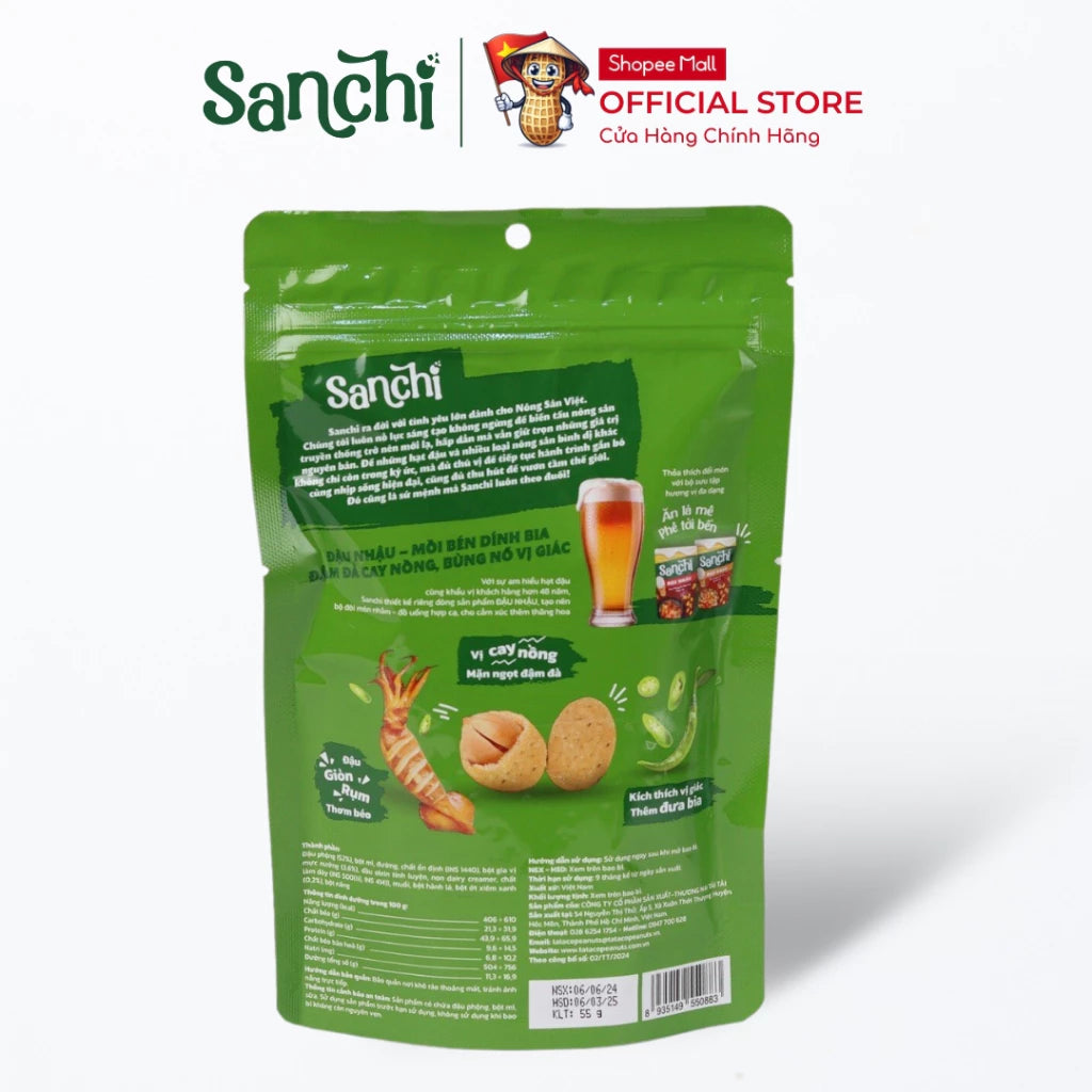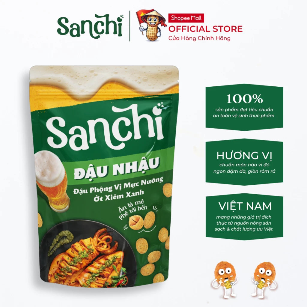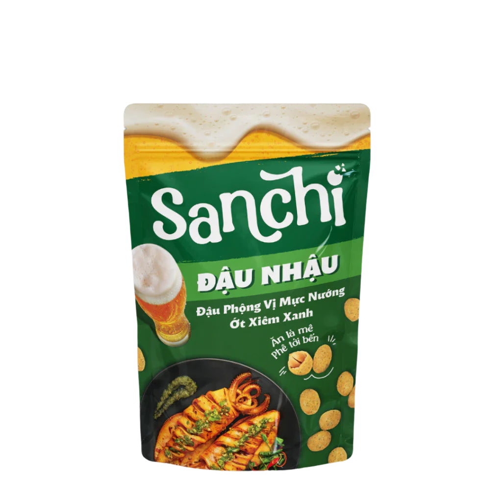 Đậu Phộng Vị Mực Nướng Ớt Xiêm Xanh Sanchi 55g - Snack Ăn Vặt Đậu Phộng Hương Vị Thật, Đậm Đà, Giòn Tan