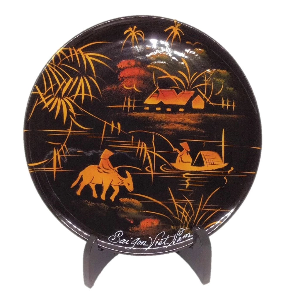 Sản phẩm là vật trang trí tinh tế phù hợp với nhiều không gian khác nhau như phòng khách, phòng làm việc, nhà hàng,… Dĩa trang trí mang vẻ đẹp truyền thống với những hình ảnh đặc trưng của Việt Nam, hoa văn tinh xảo, sắc nét, mang giá trị nghệ thuật cao. Sản phẩm được làm từ chất liệu gỗ cao cấp, bề mặt có phủ lớp sơn bảo vệ chống trầy xước, chống thấm và lâu bay màu.