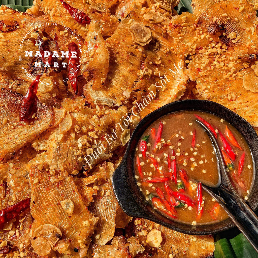 Sốt me chua cay trộn đều cùng satế tỏi sẽ ra loại nước chấm rất ngon để chấm ĐUỐI BƠ TỎI và em có kèm theo trong hủ luôn nha, không phải mắm me nha.