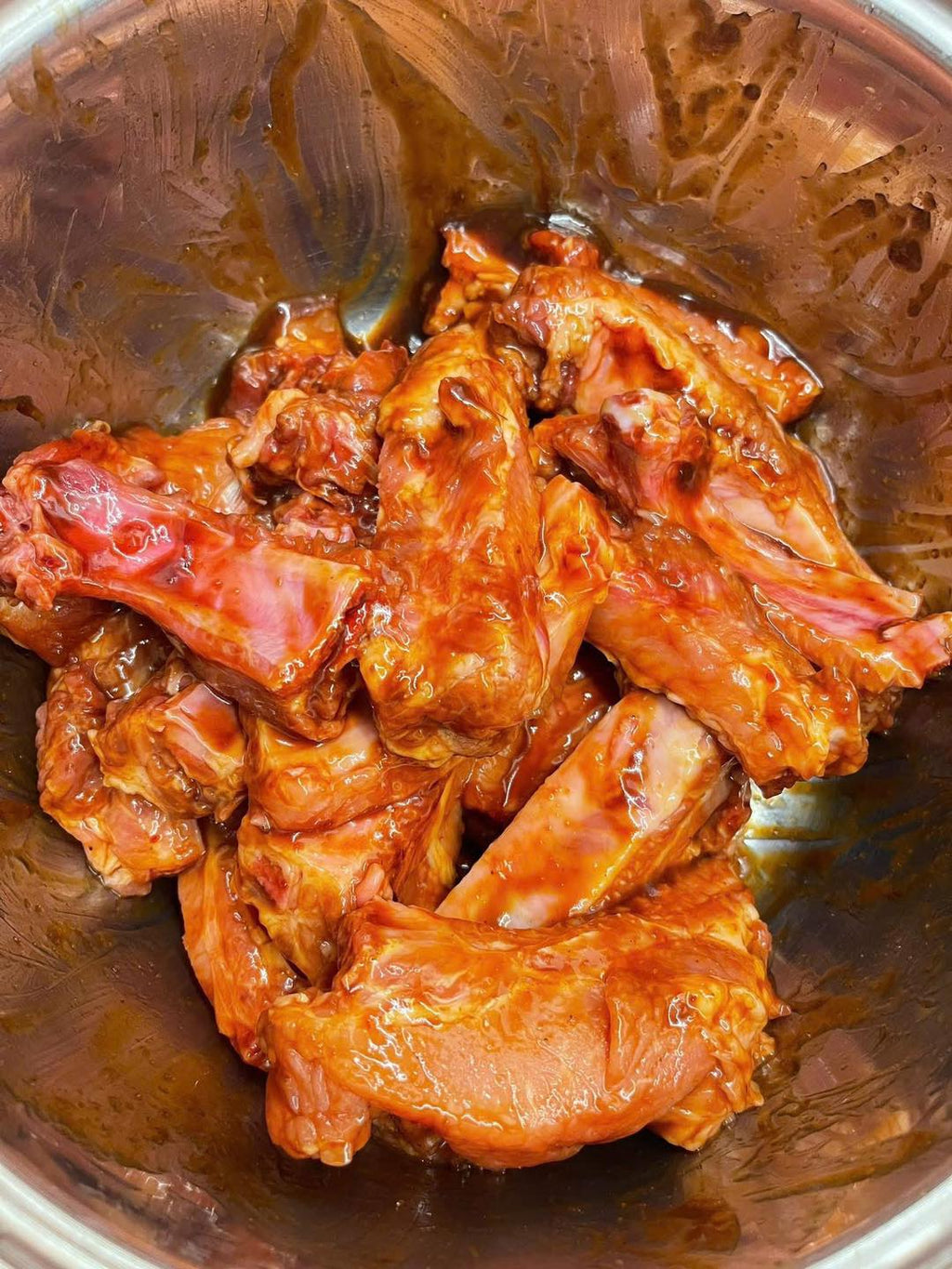 Lưu ý: Thịt ướp gia vị sau khi rửa sạch bạn nên xâm thịt xong rồi ướp gia vị sẽ ngấm nhanh.
