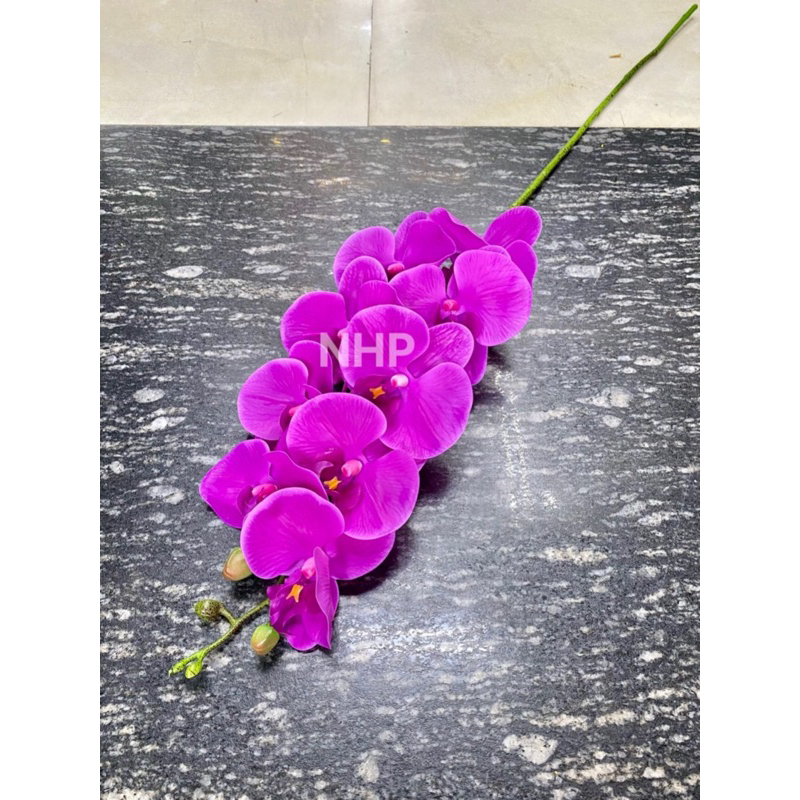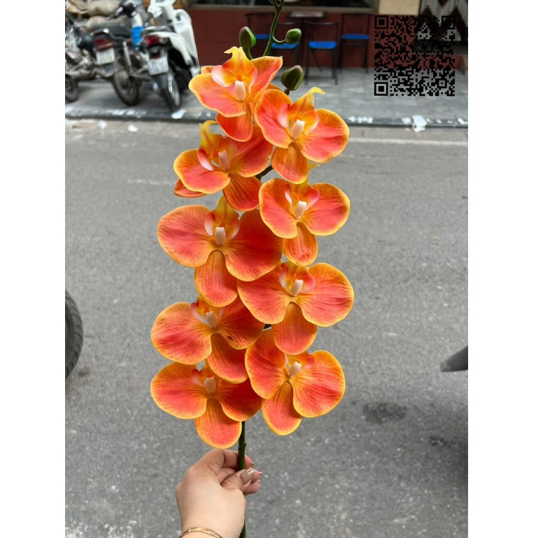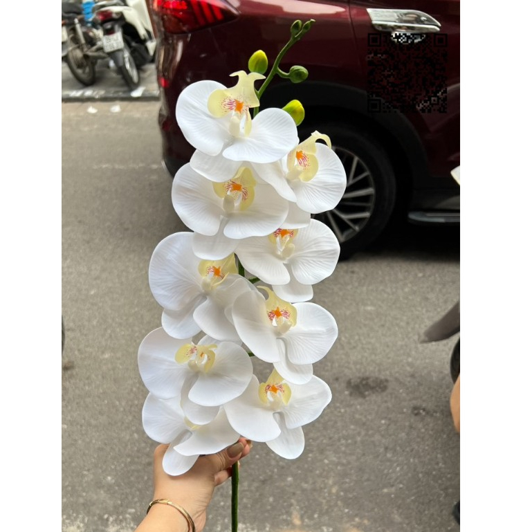 Cánh cao su mềm, mịn, giống hoa thật, có thể cắt ngắn theo ý người cắm, có lõi thép uốn tạo dáng kiểu. Cành hoa sóng đôi như ảnh