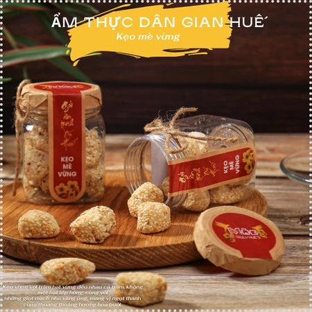 - Kẹo mè vừng truyền thống nơi đây. Mạch nha ngọt thanh hòa quyện với thơm bùi của vừng tạo nên hương vị đặc biệt khó quên. Nhâm nhi kẹo mè vừng cùng tách trà nóng, quả thực là một trải nghiệm thú vị.