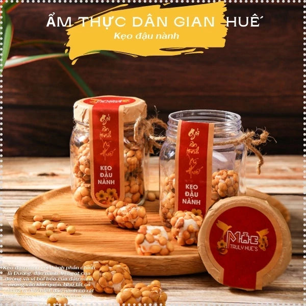 - Kẹo đậu Nành Truyền Thống Huế giòn tan trong miệng cùng vị béo bùi của đậu nành, sẽ cho bạn một trải nghiệm khó quên. Các nguyên liệu sạch đã được Mộc Truly Huế lựa chọn kỹ lưỡng để đảm bảo bạn nhận được những gì tinh túy nhất của xứ Huế.