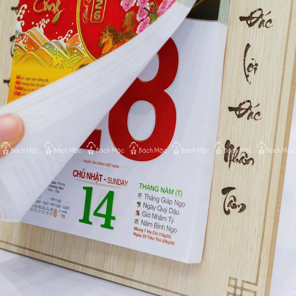 + Lịch giấy: 14x20cm