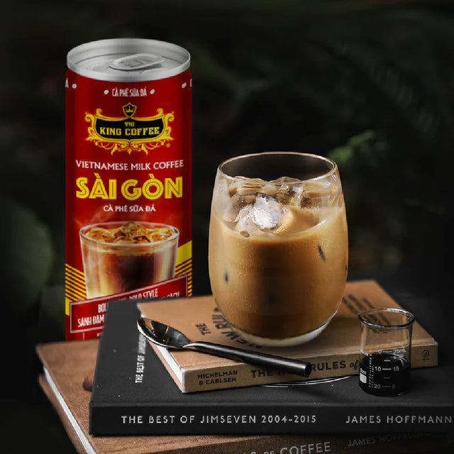KING COFFEE cà phê sữa đá Sài Gòn đóng lon phiên bản đậm gu Việt được đặc chế dành cho gu thưởng lãm cà phê của người Việt: mạnh mẽ hơn, đậm đà hơn so với các sản phẩm cà phê đóng lon dành cho người nước ngoài