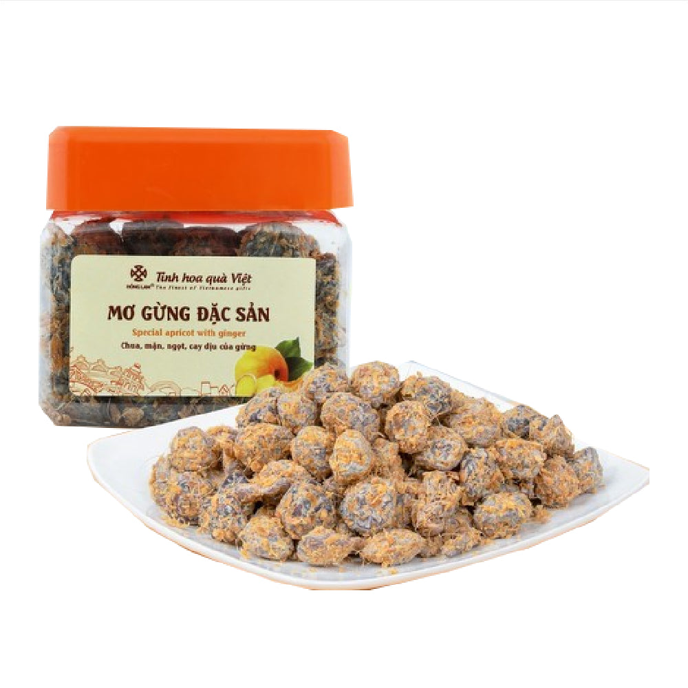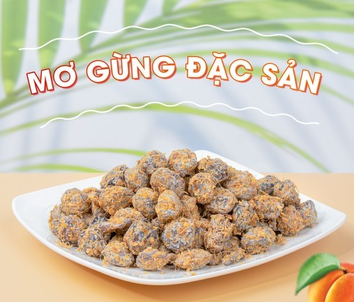 Mơ gừng đặc sản là vị ô mai truyền thống lâu đời nhất, được các thầy thuốc Đông y dùng làm vị thuốc quý từ xưa. Sản phẩm là sự kết hợp giữa vị chua thơm tự nhiên của trái mơ, vị mặn ngọt đậm đà của muối đường và vị cay nồng của gừng tươi