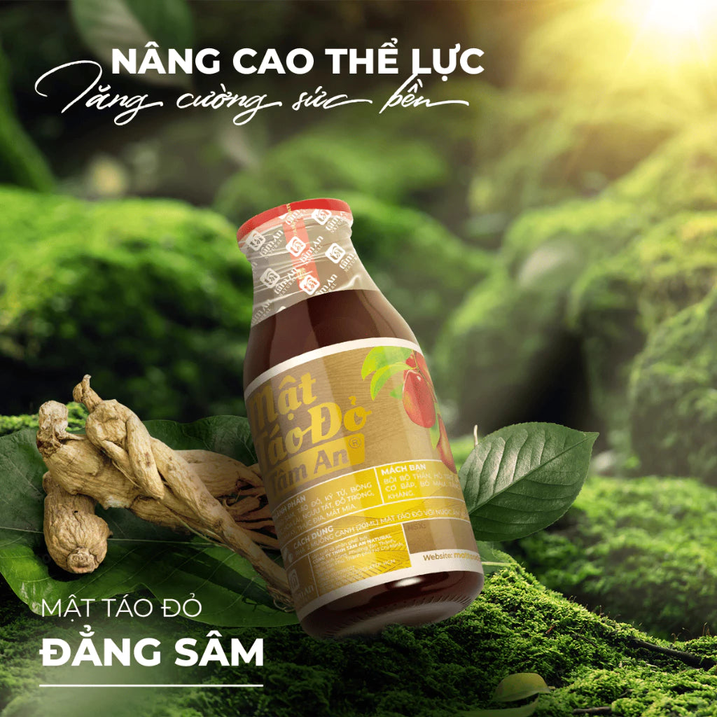 - Mật Táo Đỏ Đẳng Sâm tự nhiên 250ml Tâm An phù hợp với những người thiếu máu, sức đề kháng kém.
