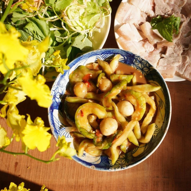 Mắm dưa Dì Cẩn là đặc sản nổi tiếng của Đà Nẵng, có dưa, cà pháo, đu đủ trộn cùng mắm nêm, tạo nên hương vị thơm ngon đặc trưng.