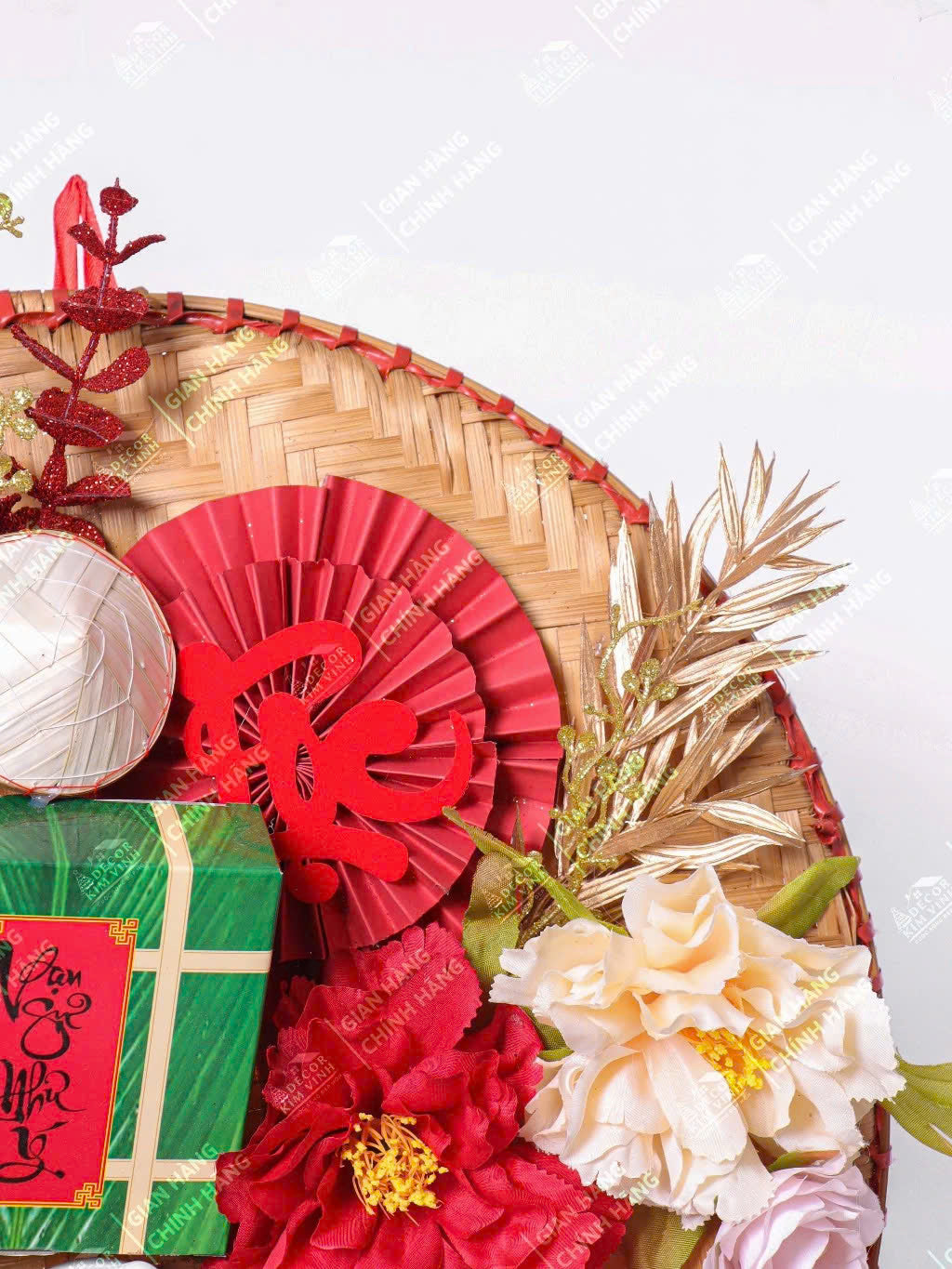 + Chất liệu: Mẹt tre nứa và các phụ kiện giấy xốp như hình