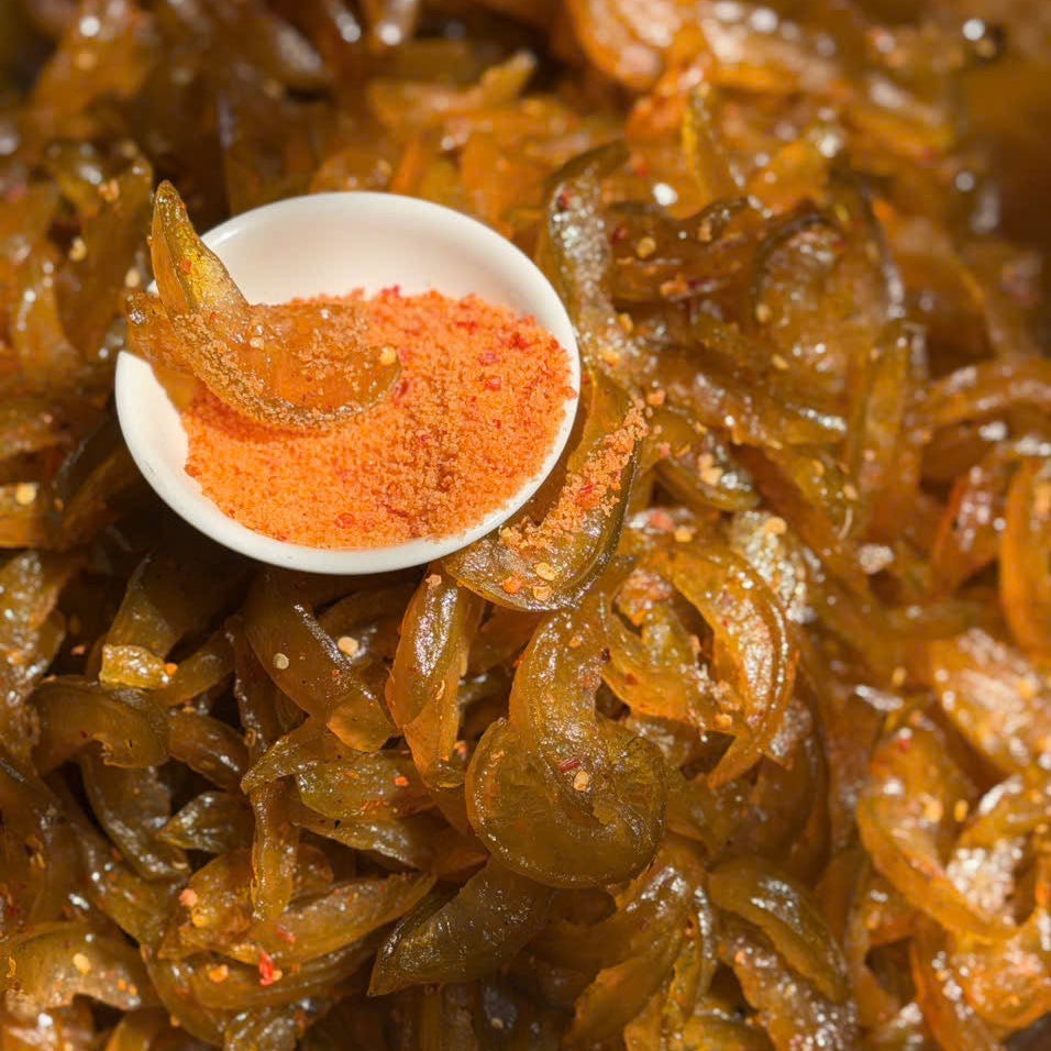 Mứt cóc sấy muối ớt cay tê dành cho team thích ăn chua ngọt, cay nhiều.Cóc già được tách hạt, ướp cùng muối ớt, sấy nhẹ nên vẫn giữ độ mềm dẻo, không bị khô cứng.