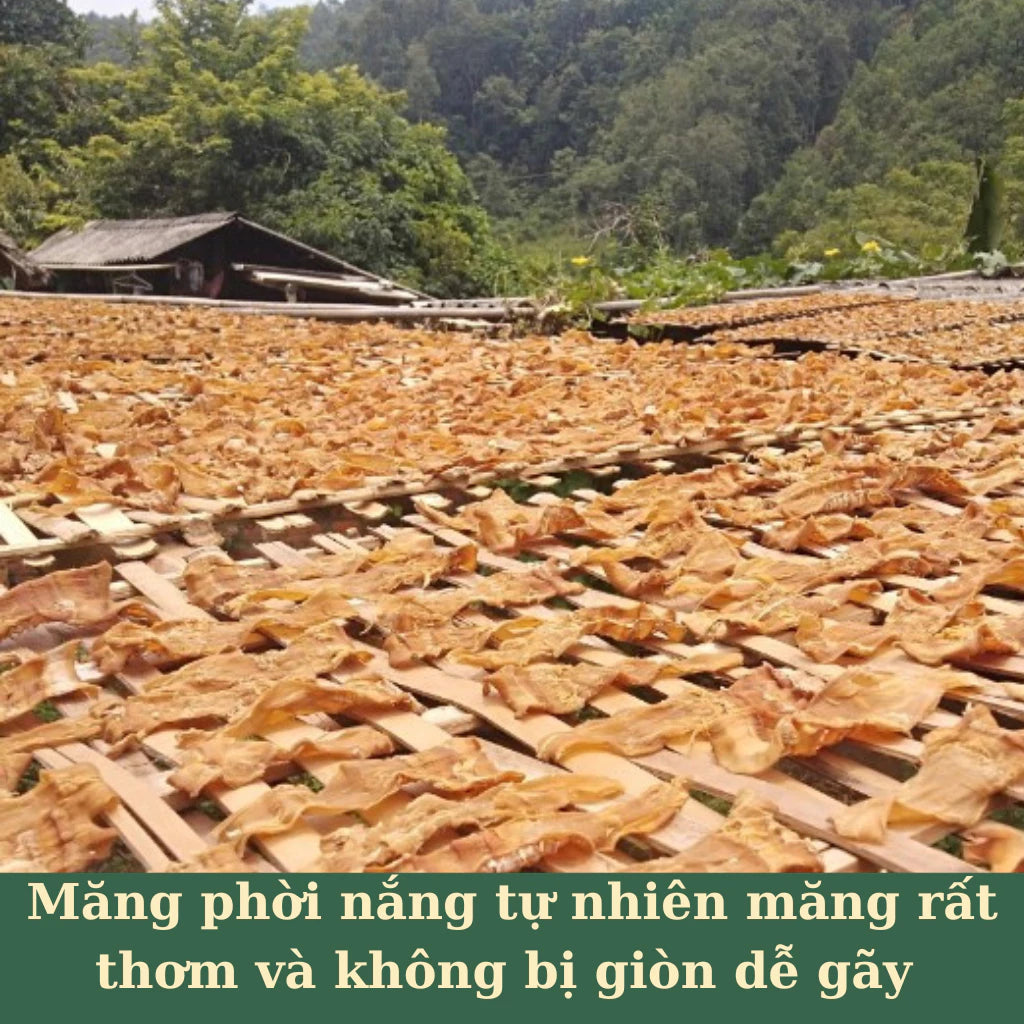 - Sau khi đào măng được chế biến ngay, luộc rồi phơi khô hoàn toàn dưới nắng tự nhiên nên thành phẩm thơm mùi của nắng, của măng khô rất dễ chịu