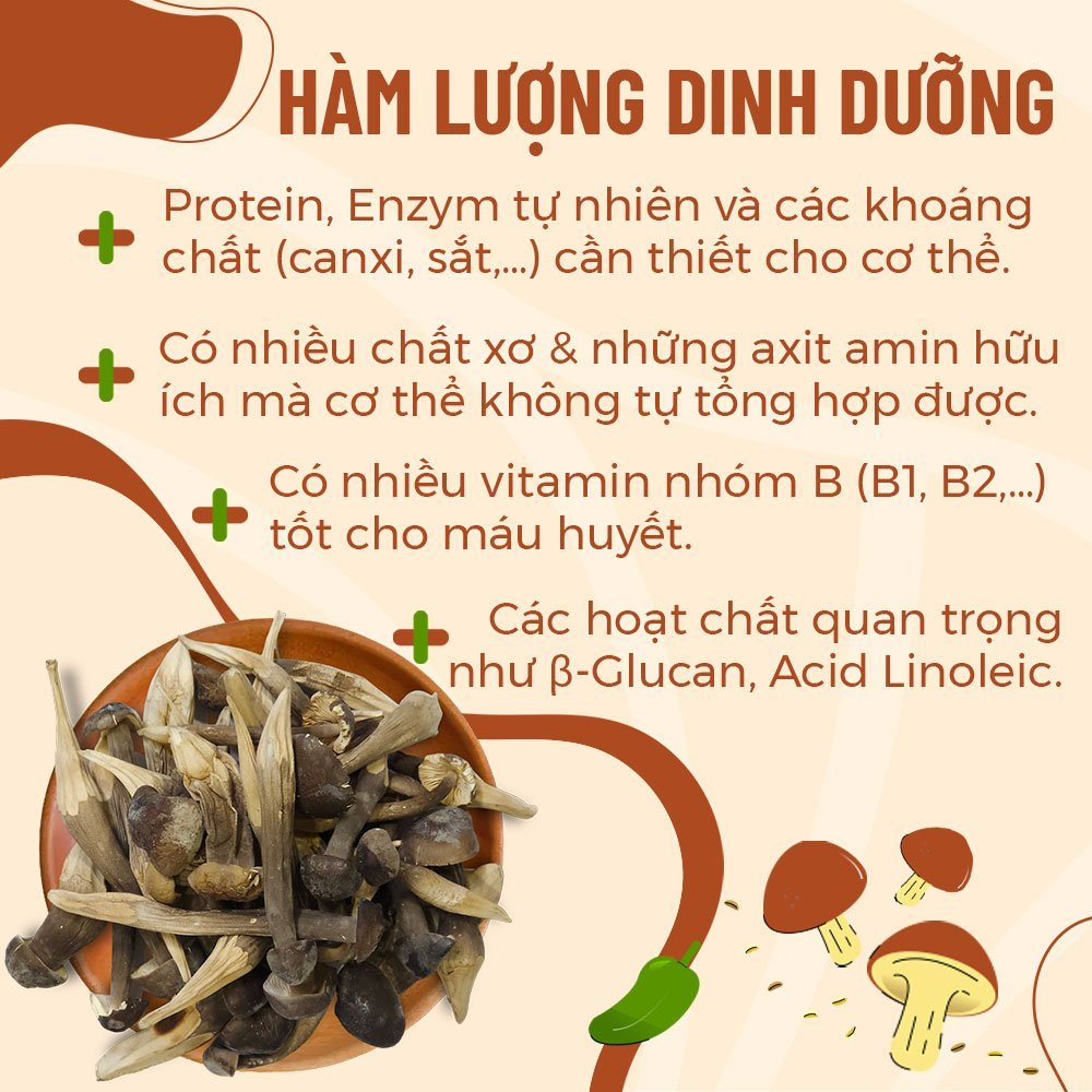 Nấm Mối Đen Sấy Khô dùng tiện lợi hơn nấm tươi, có thể bảo quản tới 12 tháng, mang đi nhiều nơi hoặc thậm chí gửi biếu tặng. Khi sơ chế loại nấm này, bạn cũng chỉ cần ngâm nước lạnh từ 5-10 phút là đã có thể dùng chế biến món ăn một cách nhanh chóng rồi