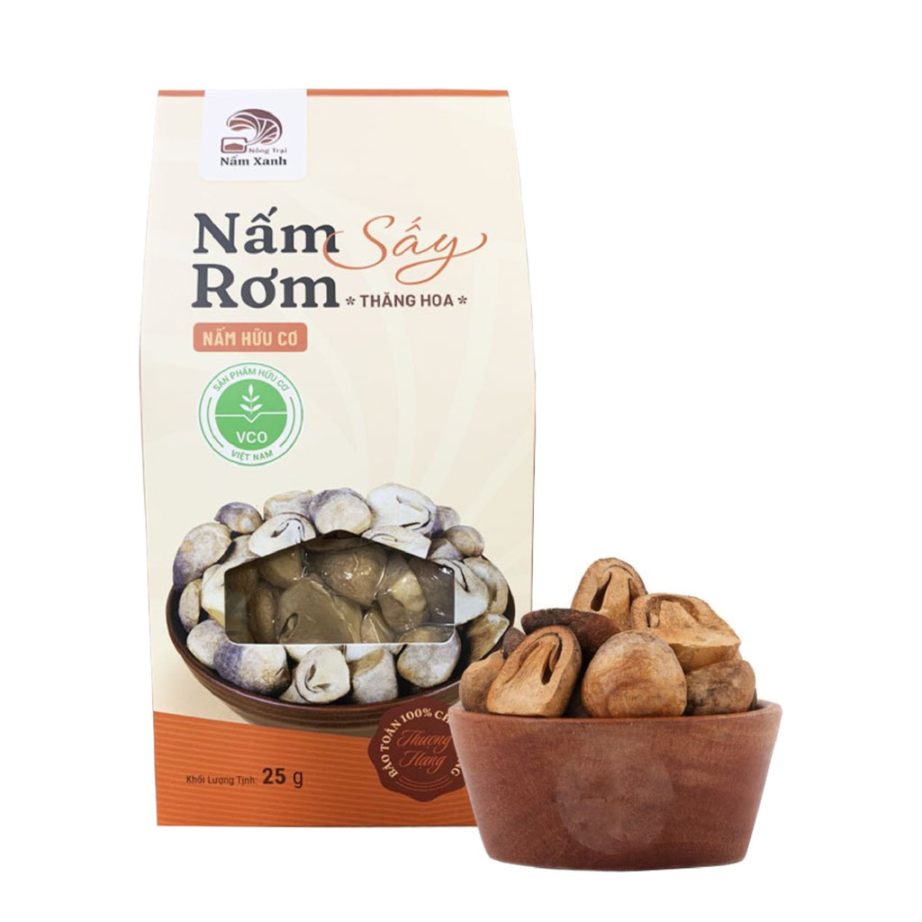 Nấm Rơm Sấy Thăng Hoa với 100% thành phần từ Nấm Rơm Búp tươi tuyển chọn loại 1, là nấm sạch, thịt nấm chắc với độ ngon ngọt và mùi vị không thể chê. Cách chế biến cũng vô cùng thông dụng, có thể kết hợp với mọi món ăn, gồm cả món chay lẫn món mặn