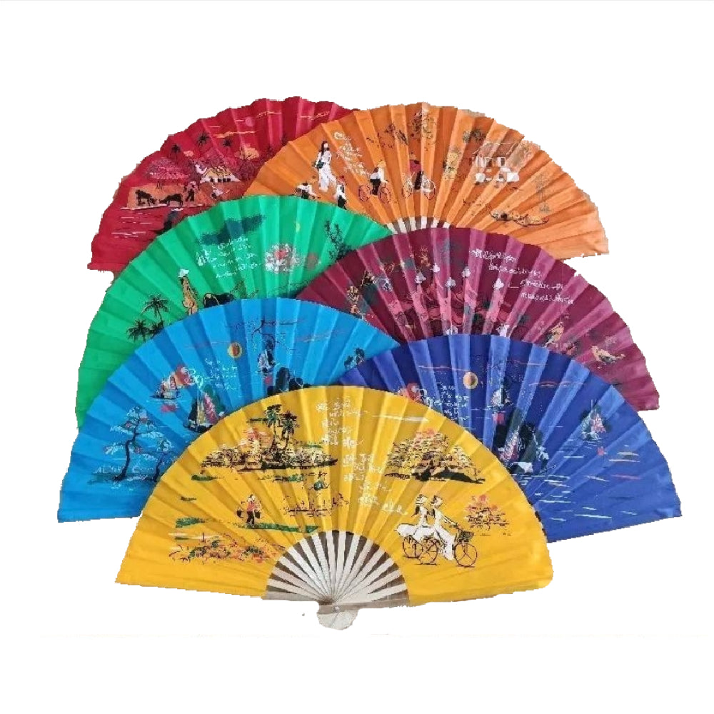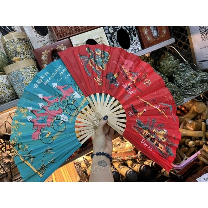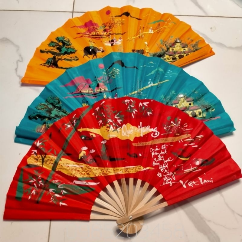 Quạt vải vẽ phong cảnh thư pháp - quà tặng lưu niệm Việt Nam