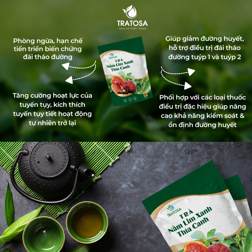 Thành phần: Nấm lim xanh rừng, Dây thìa canh lá to, Dong riềng đỏ, Khổ qua rừng, Giảo cổ lam, Lá sen, Cỏ ngọt