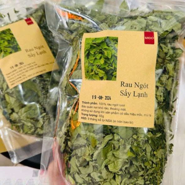 Rau ngót sấy lạnh của MiDo đã được tuốt lá, rửa sạch, sục ozone và sấy bằng máy sấy lạnh. Quý khách hàng chỉ cần lấy 1 nhúm rau sấy khô, ngâm trong nước sạch 15-20 phút là có thể chế biến.