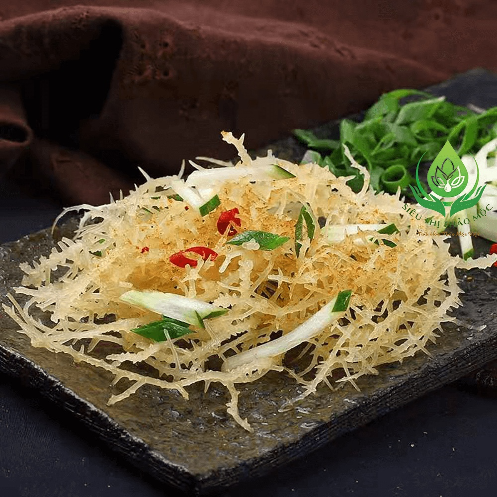 - Trụng qua nước sôi cho rong hết mặn là dùng được