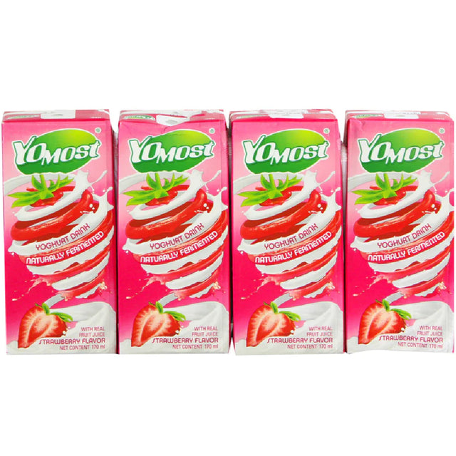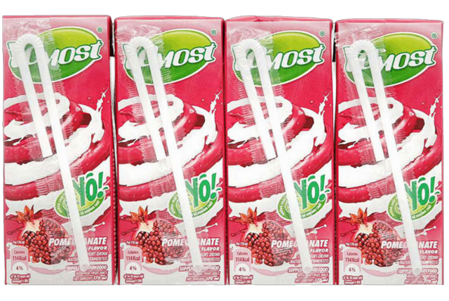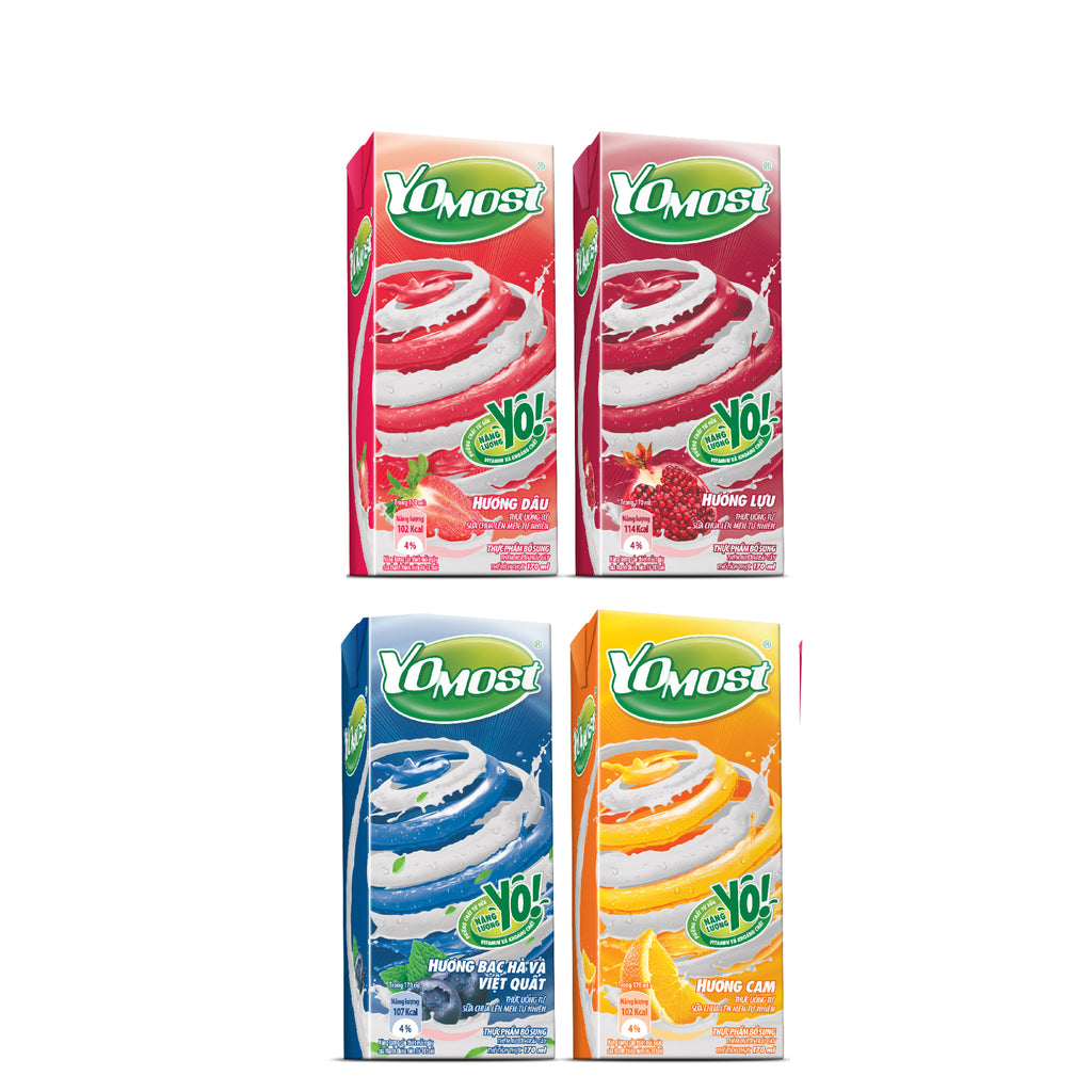 Sữa chua uống Yomost được làm từ sữa chua lên men tự nhiên cùng với các loại hoa quả tươi như cam, lựu, dâu, việt quất..tạo nên một hương vị chua ngọt đặc trưng và hấp dẫn