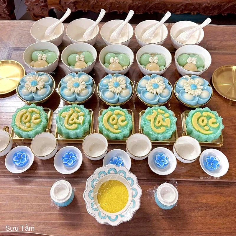 Set khuôn nhấn xôi 7 mặt khuôn hoa sen phúc lộc thọ tài sen hồng vĩnh trường 10cm