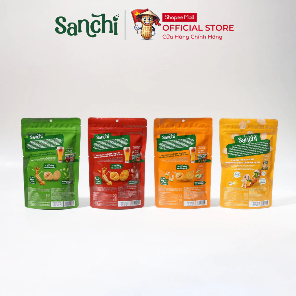Snack Đậu Phộng Sanchi 4 Hương Vị Túi Zipper 55g - Snack Ăn Vặt Đậu Phộng Hương Vị Thật, Đậm Đà, Giòn Tan: