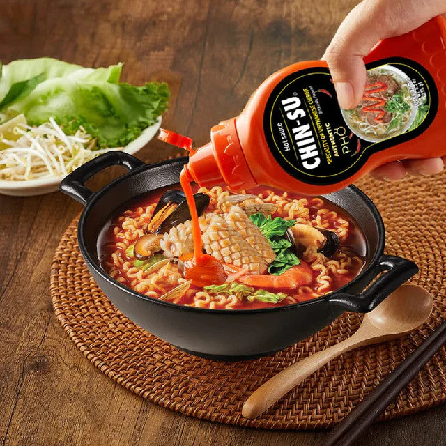 Được làm từ ớt tươi xay nhuyễn, trải qua quá trình lên men kì công giúp giữ trọn vị cay đặc trưng của ớt tươi cùng nốt thanh chua kích thích dễ dàng hòa quyện vào nước dùng Phở. Hương vị Phở đậm đà sẽ trở nên thăng hoa khi bắt vị cùng tương ớt Phở CHIN-SU.