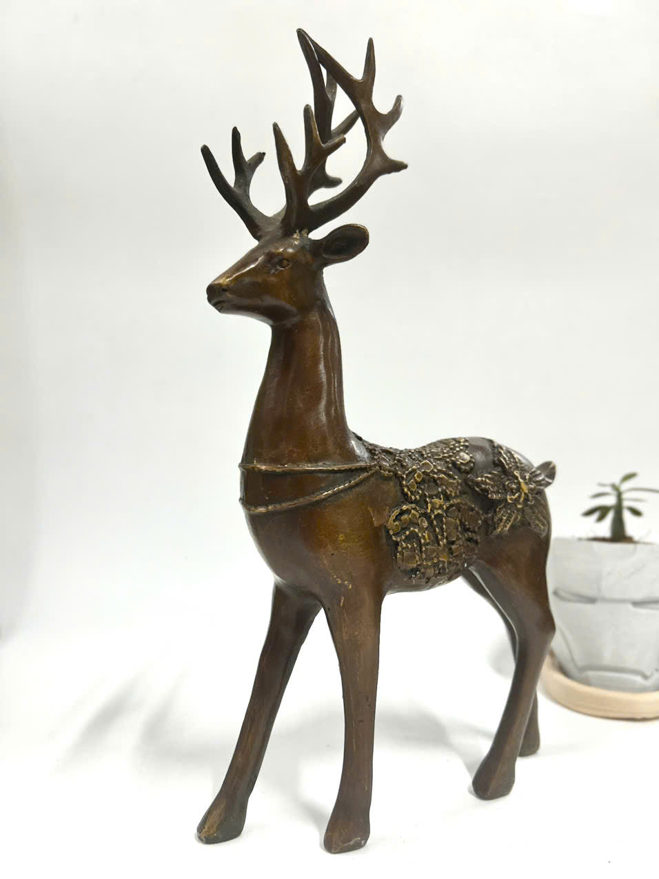 Tượng Hươu Bằng Đồng được chế tác tinh xảo từ đồng nguyên chất, với dáng đứng thanh thoát và chi tiết chạm khắc tinh tế.