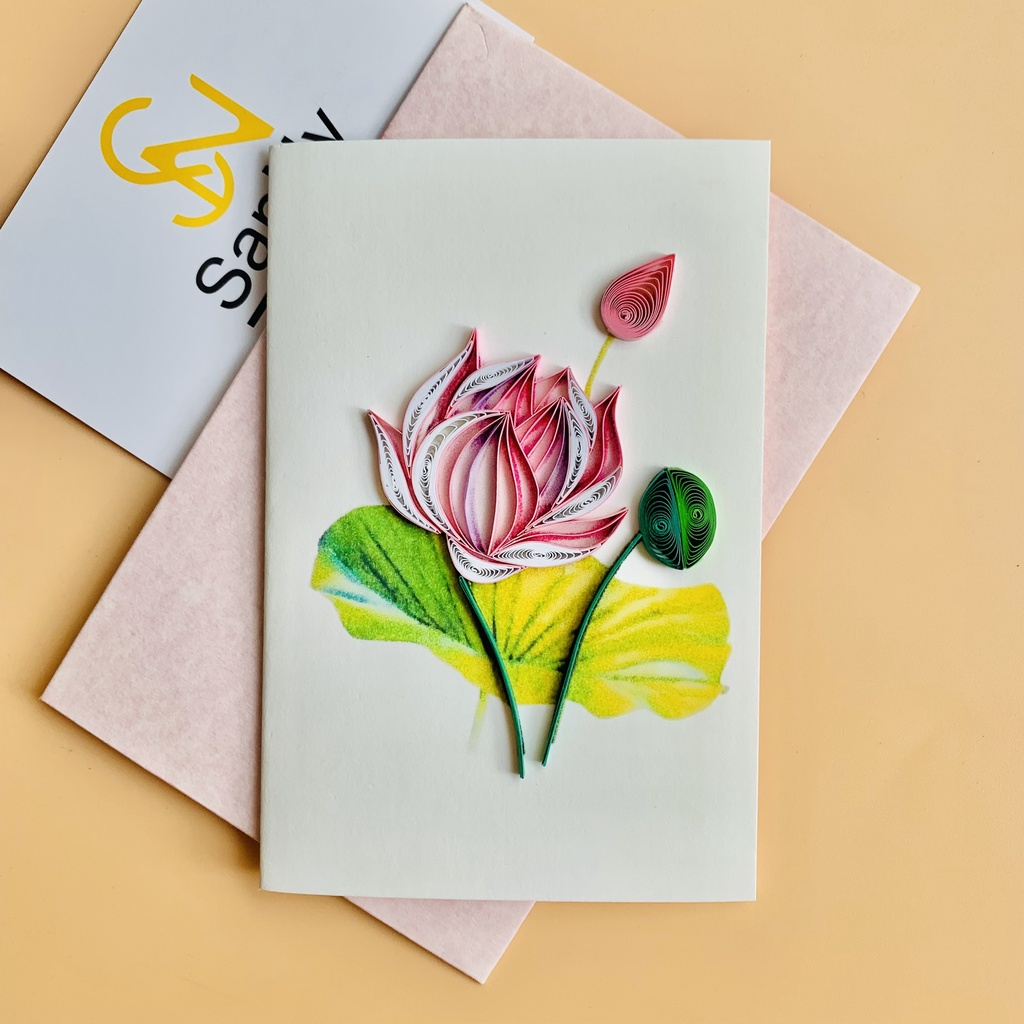 Thiệp được làm bằng tay với chi tiết giấy xoắn, gia công tại Việt Nam. Sản phẩm thủ công nên sẽ không được giống nhau 100% như hình chụp