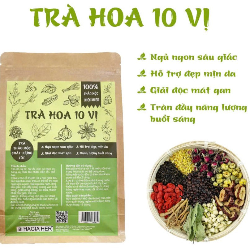 HAGIA HER - Trà Hoa 10 Vị - Set 10 Gói 300 Gram ( ĐÂY LÀ BẢN NÂNG CẤP CỦA TRÀ HOA 8 VỊ, CHUYÊN SÂU VỀ MẤT NGỦ )