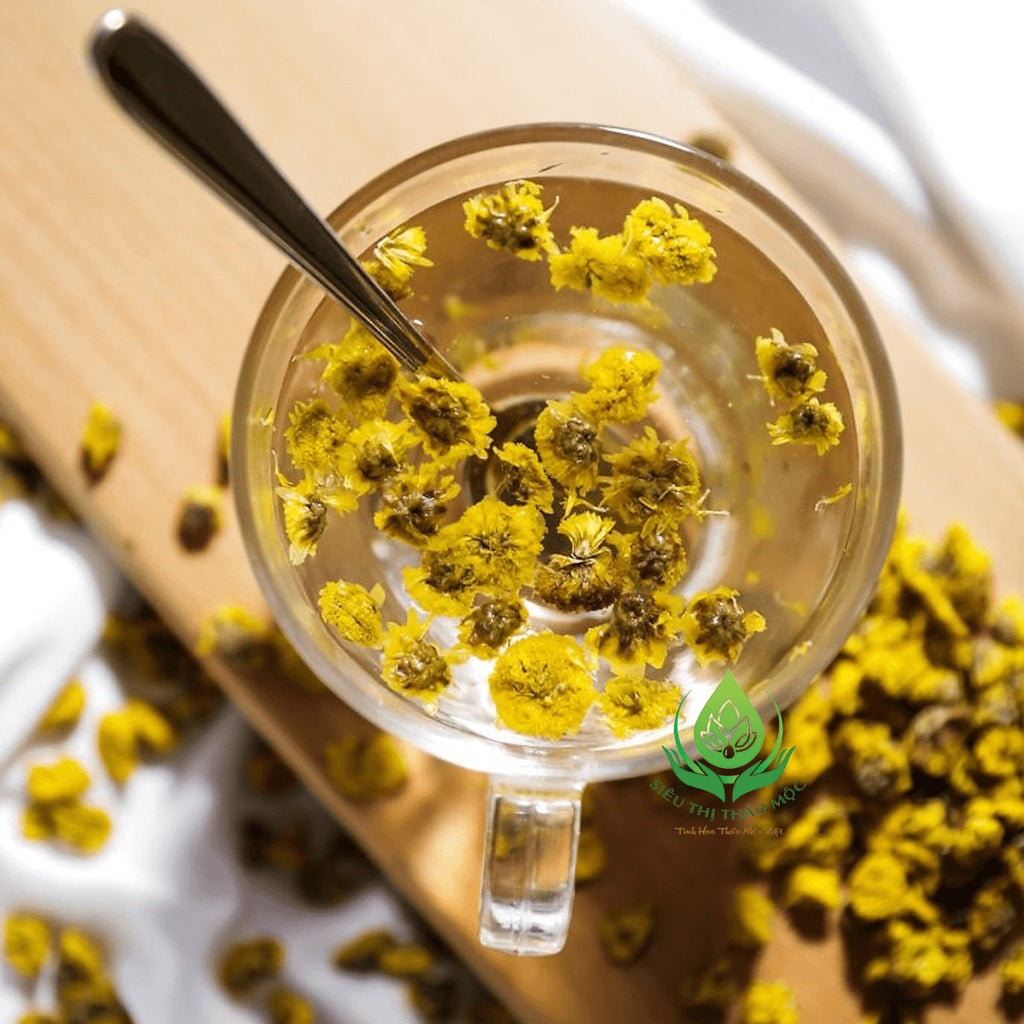 Cho 2-3gr (7-9 nụ Hoa Cúc Vàng Khô) vào khoảng 150ml nước nóng để hãm trà hay chè. Có thể phối hợp thêm chút đường phèn, long nhãn, kỷ tử, táo đỏ để tăng thêm hương vị trà thảo mộc. Hoặc đơn giản hơn, bạn chỉ cần sử dụng 5-7 bông hoa cúc sấy khô, 1-2 lá cỏ ngot cùng 200ml nước sôi là bạn đã có ngay một tách trà hoa cúc thư giãn rồi!
