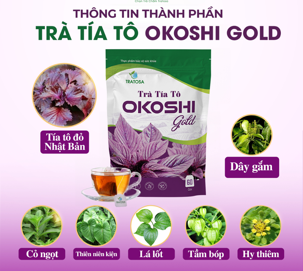 Công dụng: khi sử dụng Trà Tía Tô Okoshi Gold làm nước uống hằng ngày